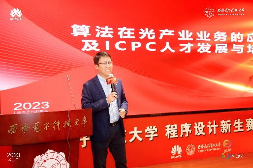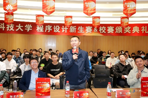 华为技术有限公司赞助了本届程序设计竞赛以及2022程序设计新生赛,2023年5月7日为本届校赛及78名新生赛获奖同学举行了颁奖会,我校创新创业学院副院长尹鹏、计算机科学与技术学院副院长暨程序设计竞赛基地主任万波教授出席颁奖会并作了发言,华为光产品线代表刘文杰、雷俭、陈晓磊、陈泽等介绍了算法在光产业业务中的应用,就ICPC人才发展与培养等问题与同学们进行了充分交流。