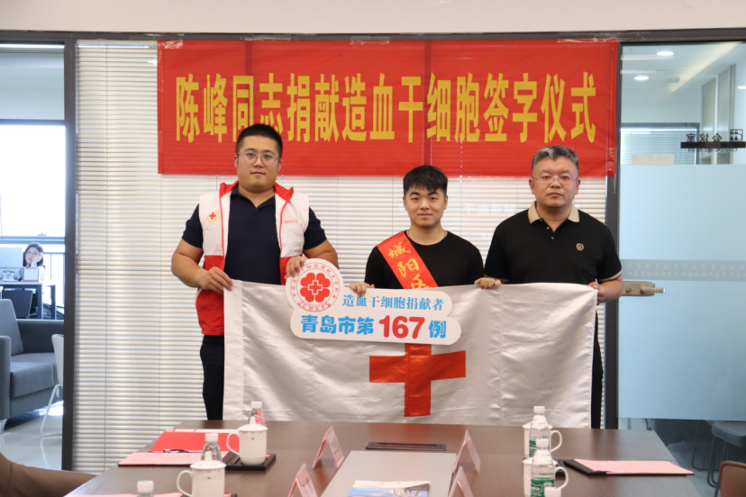(通讯员 于京艳 同榛)季夏之时,沐光而行。2023年6月14日第二十个世界献血者日当天,西安电子科技大学计算机科学与技术学院硕士2021级软件工程专业陈峰同学确定如期参加造血干细胞捐献,成为青岛市第167例、城阳区第24例造血干细胞捐赠者,为千里之外的白血病患者传递“生命之光”。6月21日,陈峰同学联培所在的西安电子科技大学青岛计算技术研究院与城阳区红十字会、城阳区城阳街道办事处联合举办“陈峰同学赴青岛市中心医院捐献造血干细胞欢送仪式”。