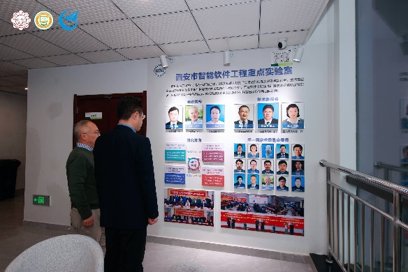 交流座谈开始前,李青山书记由二楼学院形象墙开始,向胡林平所长一行详细介绍了学院的发展历程和现有组织架构,并具体介绍了党建引领、学科建设、科学研究、人才培养、学生活动等方面取得的成就,共同参观了学院的多功能厅、党建活动室、学院办公室,并考察了智能软件与系统新技术研究所的教师办公室和学生实验室。