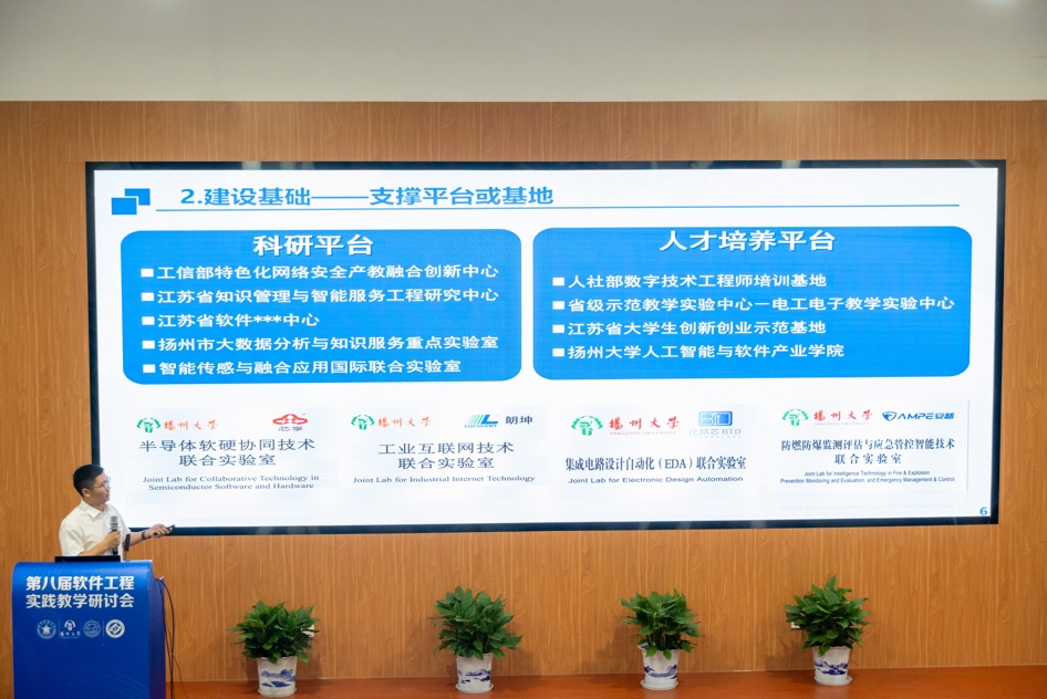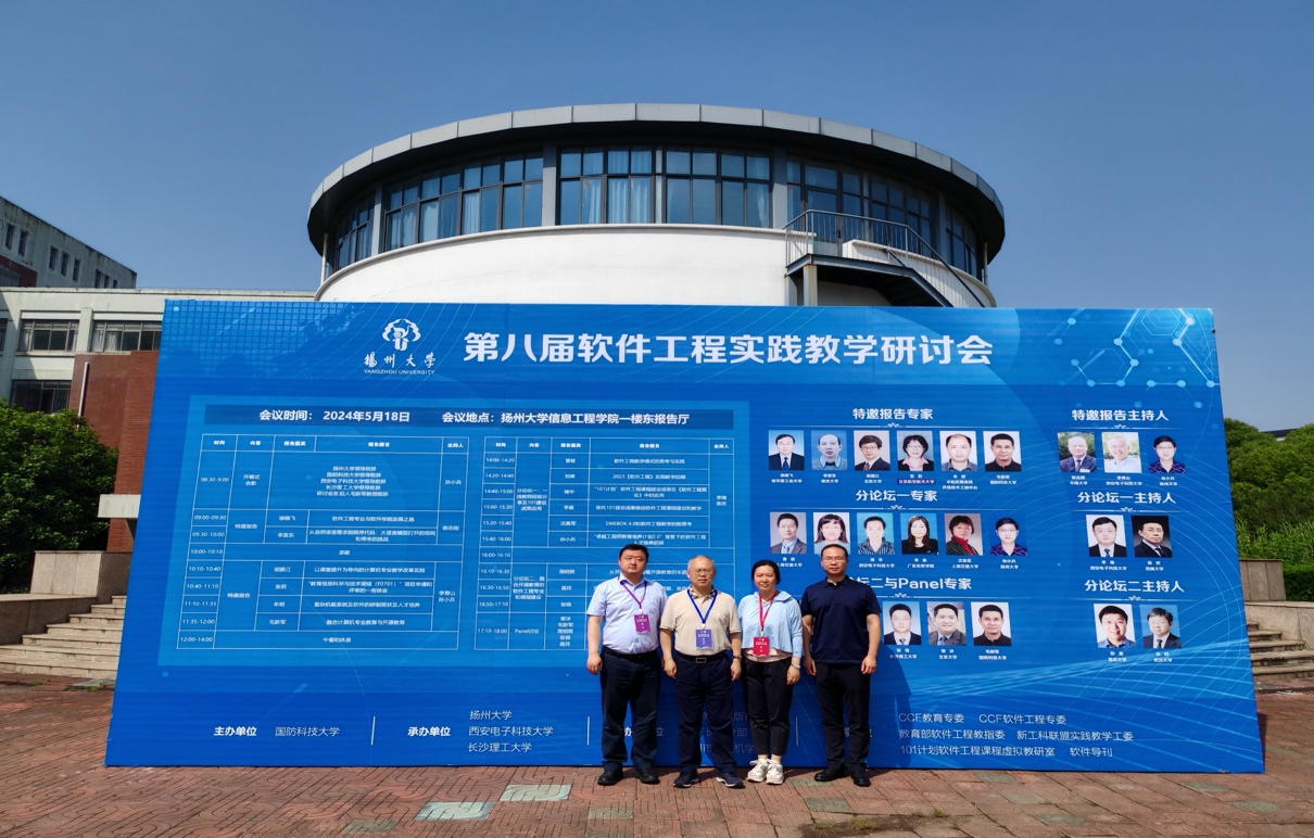 在软件定义一切和大模型时代,特色化示范性软件学院建设、软件工程专业建设、课程教学和人才培养面临着新的机遇和挑战,为了更好的促进软件工程教育教学方法和实践教学成果的交流和分享,推动软件工程专业建设和教学改革,提升软件人才的培养质量。2024年5月18日,由国防科技大学主办,扬州大学、西安电子科技大学和长沙理工大学联合承办的第八届软件工程实践教学研讨会在扬州大学信息工程学院(人工智能学院)东报告厅举行。CCF计算机教育专委会副主任、国防科技大学毛新军教授,扬州大学信息工程学院(人工智能学院)院长孙小兵教授,西安电子科技大学计算机科学与技术学院党委书记、软件工程学科负责人李青山教授担任会议联合主席。