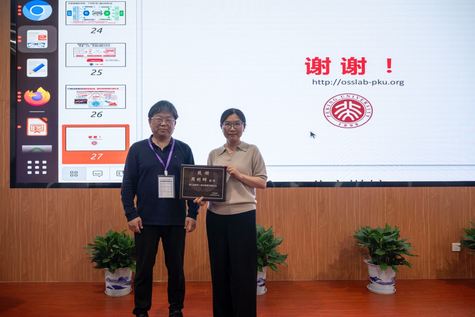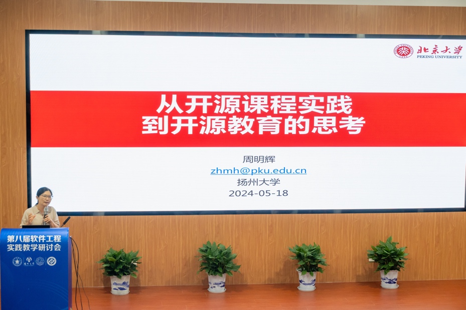 北京大学计算机学院副院长周明辉教授介绍了从开源课程实践看开源教育的本质,北京航空航天大学高祥副教授介绍了开源软件开发导论课程教学的实践与思考,长沙理工大学张锦教授介绍了基于开源创新大赛的人才培养模式探讨。