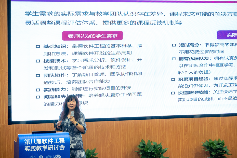 在分论坛环节,来自清华大学、北京大学、北京航空航天大学、上海交通大学、西安电子科技大学等高校的与会专家学者围绕“一线教师经验分享及101建设成果应用”“融合开源教育的软件工程专业和课程建设”两个主题开展交流分享。上海交通大学曹健教授介绍了软件工程教学方法的实践与体会,清华大学刘璘研究员介绍了2023年《软件工程》实践教学回顾,西安电子科技大学褚华副教授介绍了101计划“软件工程课程建设成果在《软件工程概论》中的应用”,分享了软件工程概论课程在教学实施过程中的心得体会,并共同探讨在软件工程课程教学中遇到的问题,广东东软学院李晶副院长介绍了依托101建设成果推动软件工程课程建设和教学,上海交通大学沈备军副教授介绍了SWEBOK4.0和软件工程教学的新思考,扬州大学孙小兵教授介绍了“卓越工程师教育培养计划2.0”背景下的软件工程人才培养。
