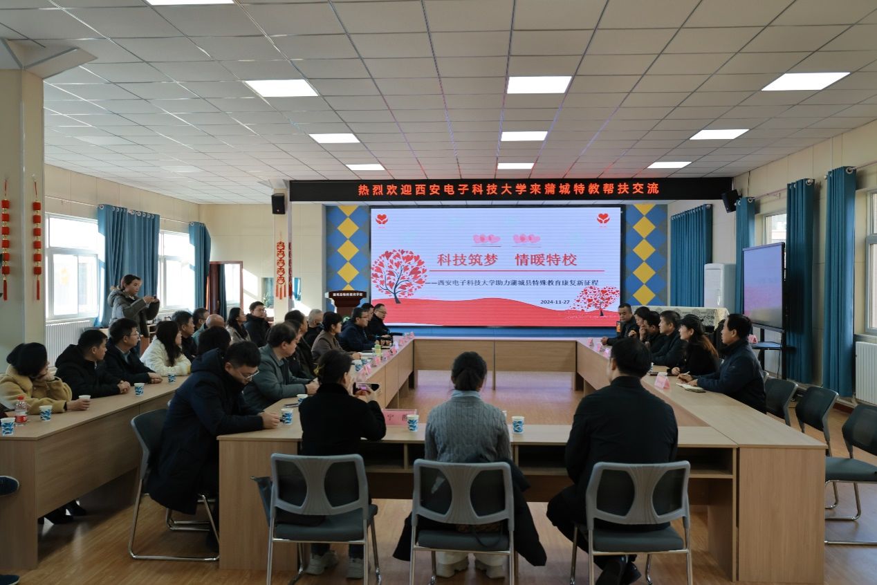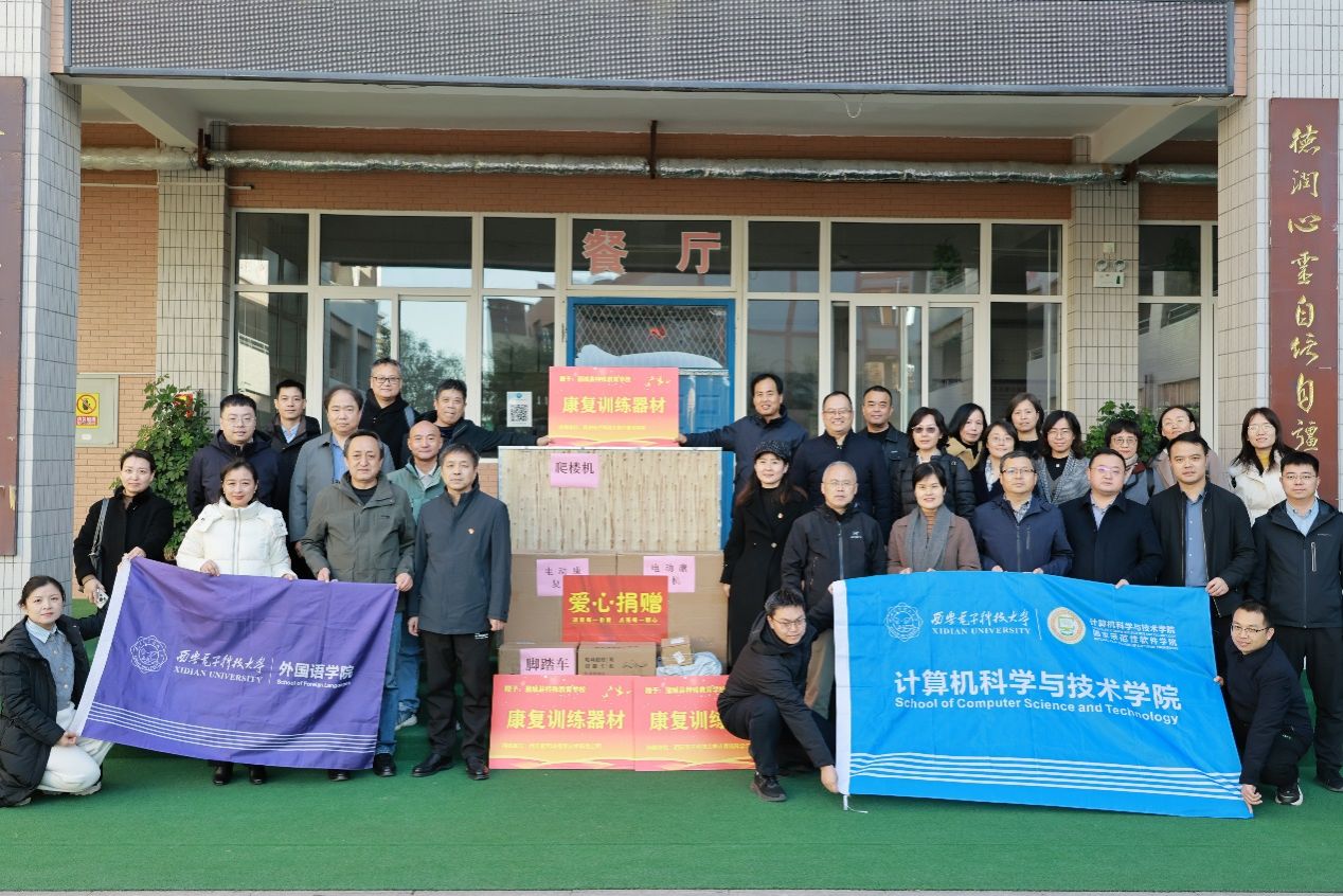 (通讯员 同榛 宁静)11月27日下午,西电计算机科学与技术学院党委书记李青山、外国语学院党委书记徐战利分别带队,两学院领导班子成员、党支部书记代表、团委书记、教师代表等赴蒲城县特殊教育学校开展帮扶交流活动,本次活动是两院联动第二年来到蒲城县特殊教育学校。校工会常务副主席吴秀霞,与我院长期友好合作的西安葡萄城信息技术有限公司(以下简称“葡萄城公司”)党支部副书记、人事行政总监、工会主席卢智峰,党支部宣传委员、招聘经理曹巧,闫家村驻村第一书记李攀等共同参加了活动。