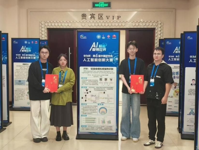 计算机科学与技术学院刘刚老师指导,研究生张元泽、李柯序、张伊萌、罗锦鹏组成的参赛团队“开Π队”,在学校选拔赛中脱颖而出,获得代表学校参加决赛的机会。决赛中,队员们沉着应对,战胜多路强手,其参赛项目“iFBI:轻量级细粒度猫狗识别”获国家一等奖,及华为专项二等奖。通过比赛展示了我院师生的研究实力和创新能力,谈及比赛感受时,“开Π队”队长张元泽同学表示:“通过这次比赛,我们不仅加深了对人工智能技术的理解,还锻炼了团队协作和解决实际问题的能力。在快速变化的比赛环境中,我们学会了如何高效沟通、合理分工,最终取得了令人满意的成果。”