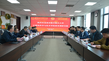 (通讯员 陈龙)2025年3月24日上午,南京航空航天大学计算机科学与技术学院党委书记刘健荣、院长黄圣君一行八人来我院调研交流,会议由我院党委书记李青山主持,执行院长崔江涛及其他班子成员等参加。