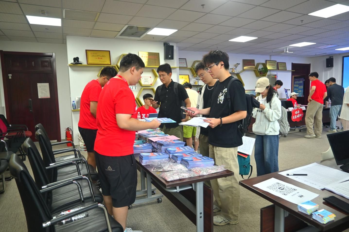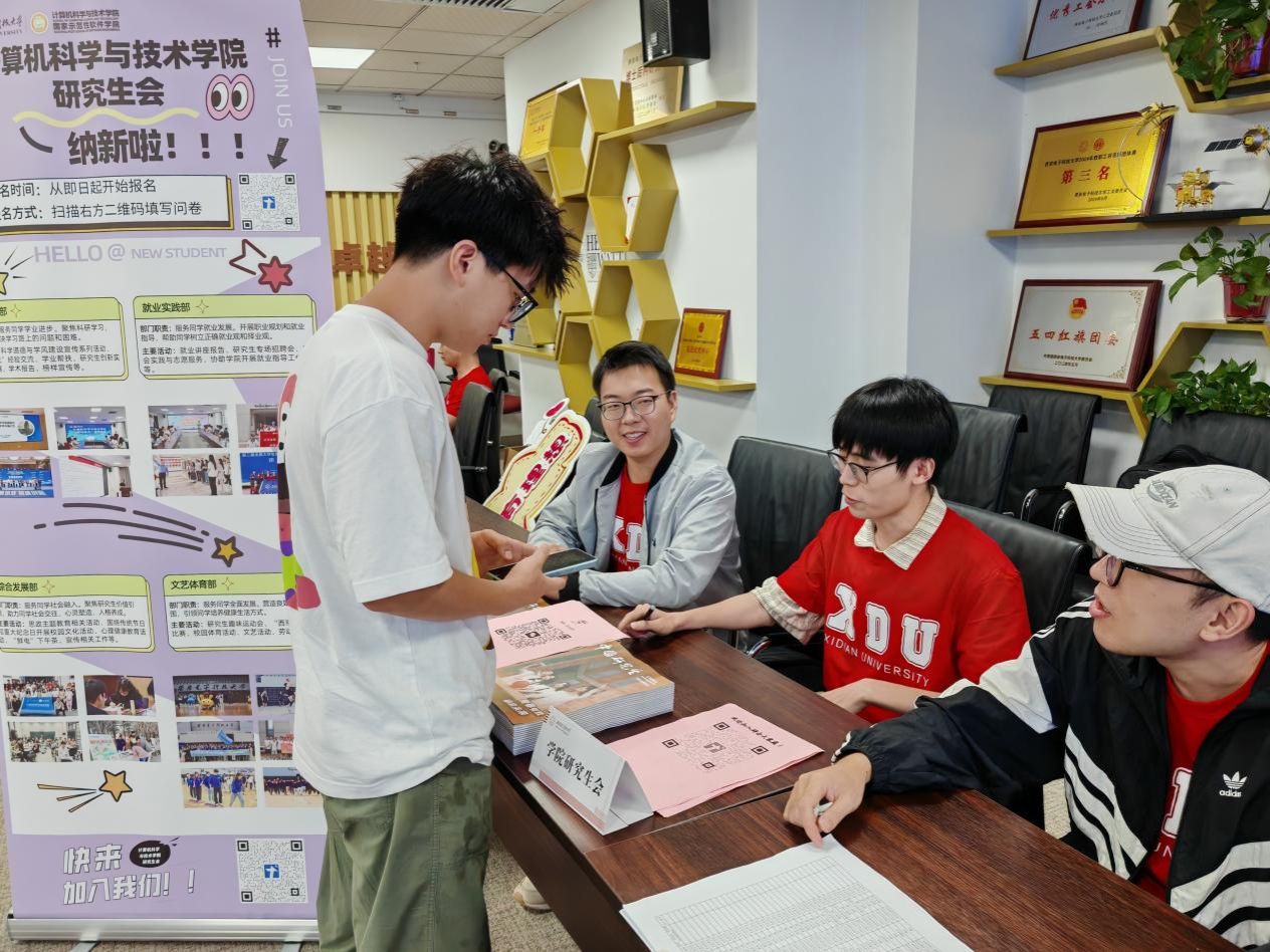 迎新当天,研会志愿者们更是以饱满的热情投入服务工作,专门设置“研会纳新点”“咨询处”,有的负责解答新生疑问,有的手把手教新生使用校内资源,有的则详细介绍学院丰富的研究生活动。