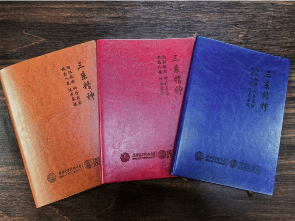 其中,设计简约大方的校徽,是西电学子身份的象征,佩戴之时便让新生直观感受到归属感;《新生指南》与《迎新手册》则如同“研途说明书”,帮助新生快速熟悉校园环境、明晰研究生阶段的学习生活重点;尤为特别的是,学院专属设计的“三系精神”主题笔记本与帆布袋,将学院“三系精神”的学术品格与精神内核融入设计,兼具实用性与辨识度,既是新生日常使用的贴心物件,也是学院精神传承的流动载体。