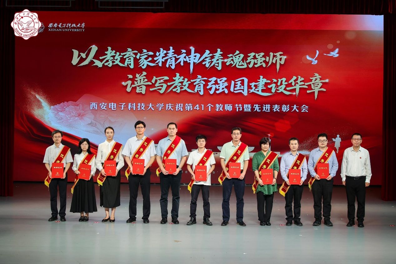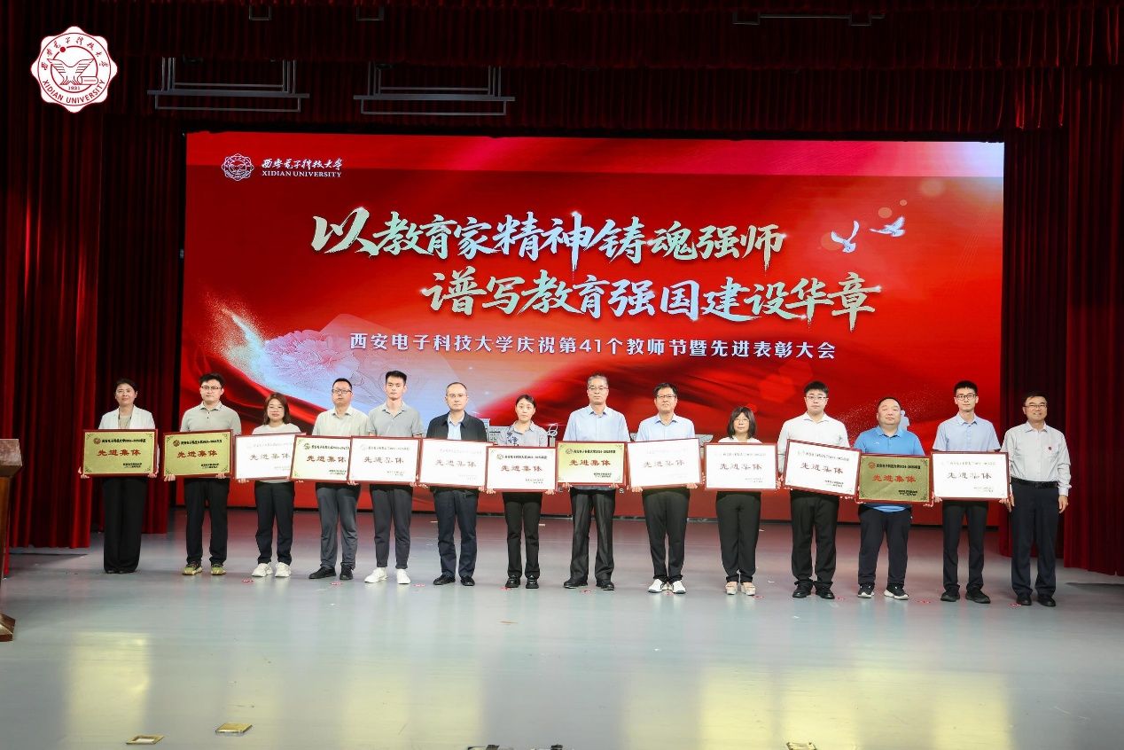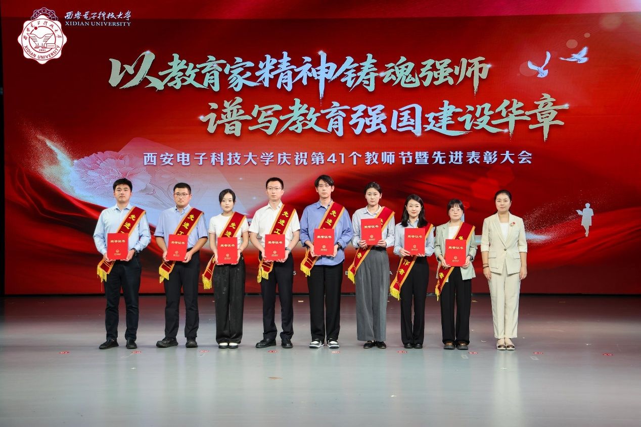 9月10日下午,西安电子科技大学庆祝第41个教师节暨先进表彰大会在南校区大学生活动中心举行。计算机科学与技术学院刘西洋教授、李青山教授获校从教30年荣誉表彰,赵伟教授、杨力教授、胡宇轩教授、袁权老师获2024~2025年度校“优秀教师”称号,殷少淼老师获2024~2025年度校“先进工作者”称号,嵌入式计算技术研究所、计算理论与技术研究所、计算机科学系获2024~2025年度校“先进集体”称号。