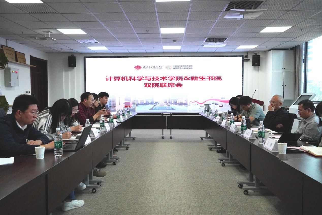 (通讯员 丁舒娜)为进一步落实学院书院双向联系机制,聚焦学风巩固提升目标, 深化学院、书院协同育人。9月23日下午,计算机科学与技术学院和2025级新生书院于网安大楼A1-223会议室召开双院联席会。计算机科学与技术学院党委书记李青山,本科生院党委副书记、学工部副部长穆宏浪,学生社区党总支副书记王朱丹,学院分管本科教育教学副院长万波,以及相关科室负责人、一二年级辅导员参加会议。会议由学院党委副书记黄成龙主持,围绕学生学情现状、成因分析及协同育人举措开展深入交流。