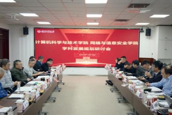 (通讯员 黄佳豪 陈龙)为深入贯彻落实全国教育大会精神,高质量践行西安电子科技大学第十三次党代会精神及“三年行动方案”目标规划,科学谋划“十五五”发展。近日,计算机科学与技术学院、网络与信息安全学院牵头在南校区网安大楼成功召开学科发展规划研讨会。会议以“聚焦‘十五五’规划,推进学科高质量发展”为主题,邀请到来自西安交通大学、西北工业大学、西北农林科技大学等8所兄弟高校的15位校外专家,与计算机科学与技术学院、网络与信息安全学院党政班子成员及学科方向负责人、骨干教师共聚一堂,共同探讨学科发展前景。研讨会由计算机科学与技术学院执行院长崔江涛教授和网络与信息安全学院执行院长李晖教授共同主持。