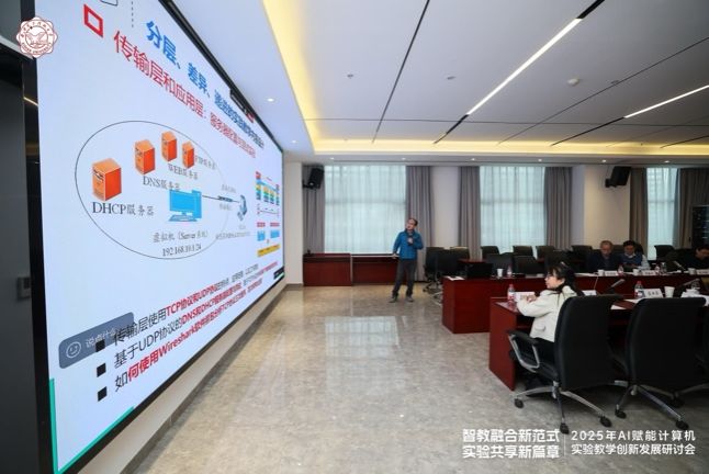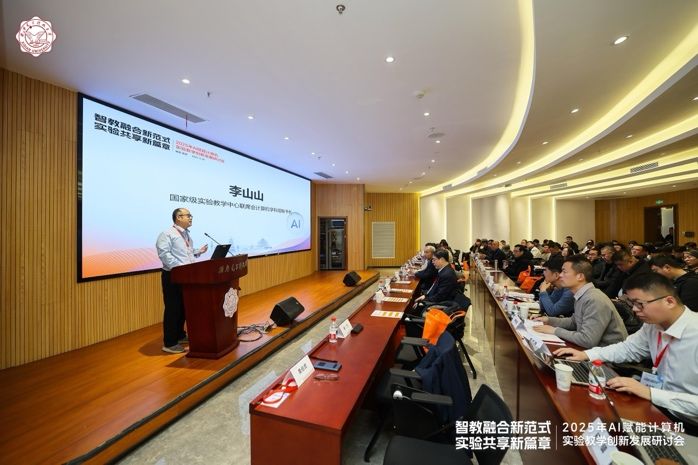 26号下午,在上午年度工作会议的基础上,实验中心继续扩大交流范围和深度,在南校区会议中心A103报告厅举行了“2025年AI赋能计算机实验教学创新发展研讨会”。会议由计算机科学与技术学院和计算机网络与信息安全国家级实验教学示范中心共同主办,武汉噢易云计算股份有限公司协办。