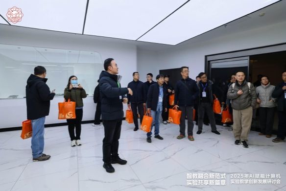 会议尾声,与会人员共同前往学校高算中心和学院实验教学中心参观交流。大家实地观摩前沿算力设备的运行应用,近距离体验 AI 赋能实验教学的实操场景,直观感受数字化、智能化技术在教育领域的落地成效,引发了与会者的深度共鸣与热烈探讨。