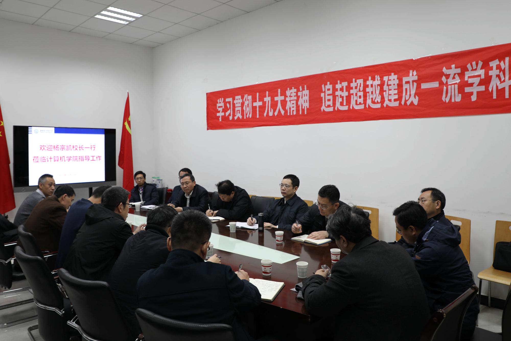 12月13日上午,校长杨宗凯到计算机学院调研指导学院建设工作,听取学院工作汇报,与学院领导班子成员、各系所负责人和教师代表进行座谈交流。
