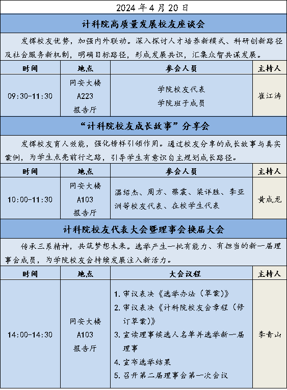 为深入推进校企融合,强化有组织的对外合作交流,提升服务国家重大战略能力,西安电子科技大学计算机科学与技术学院(示范性软件学院)校企融合发展大会暨学院校友会第二届理事会换届大会相关活动定于2024年4月19日至21日在学校南校区召开。