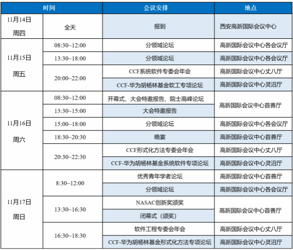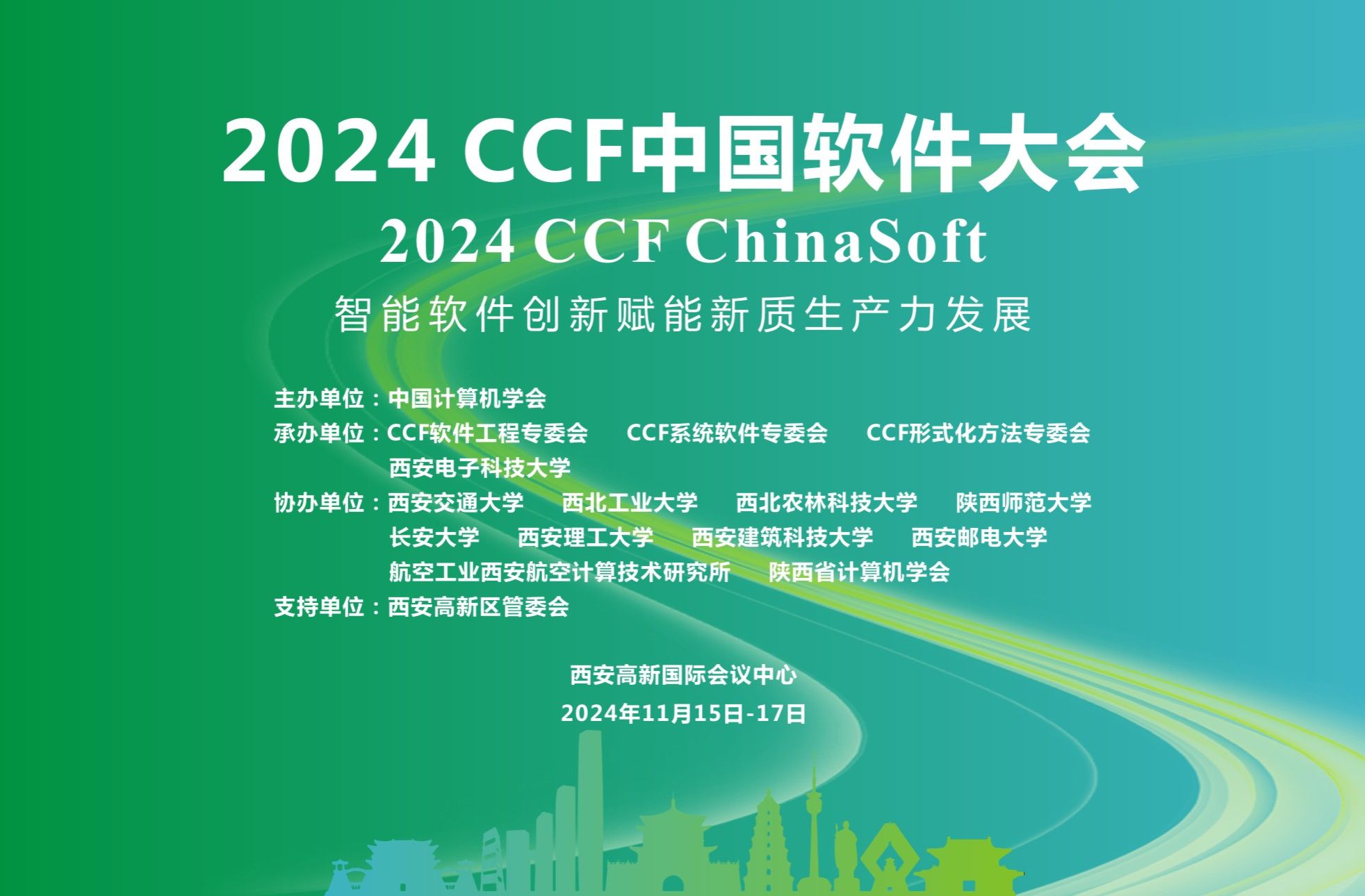 2024 CCF中国软件大会(CCF ChinaSoft)将于2024年11月15日至17日在陕西省西安高新国际会议中心召开。大会由中国计算机学会(CCF)主办,CCF软件工程专委会、系统软件专委会、形式化方法专委会、西安电子科技大学承办,西安电子科技大学计算机科学与技术学院(国家示范性软件学院)具体落实,西安市智能软件工程重点实验室负责实施,得到西安高新区管委会的大力支持。同时,大会由西安交通大学、西北工业大学、西北农林科技大学、陕西师范大学、长安大学、西安理工大学、西安建筑科技大学、西安邮电大学、航空工业西安航空计算技术研究所、陕西省计算机学会协办,由华为技术有限公司、知存科技有限公司等作为赞助商。本届大会的主题为“智能软件创新赋能新质生产力发展”。