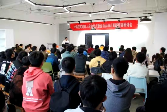 下午,金山云技术专家丁明辉、刘不凡在G楼308为80多名计算机科学与技术学院的本科生进行了“金山云AIoT实验培训”,培训以“项目育人”为切入点,内容涉及:金山云智能家居系统架构,金山云智能家居模块接口API,金山云智能家居编程模式,金山云人工智能图像处理接口以及使用模式等内容。培训会总共持续了两个多小时,期间,同学们和金山云专家进行了热烈的讨论,中心教师黄伯虎、李航等也一并参与了问题解答。