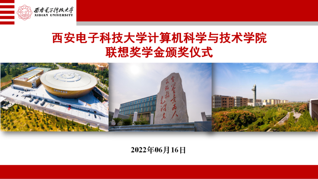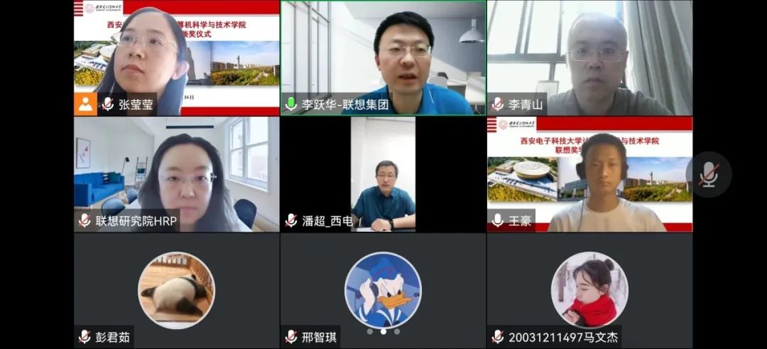 (通讯员 潘超)2022年6月16日上午,西安电子科技大学计算机科学与技术学院举办“联想奖学金”线上颁奖仪式,联想研究院高校合作高级经理李跃华、联想研究院人力资源业务伙伴(HRP)赵香女,计算机科学与技术学院党委书记李青山,学院教授代表、网络与继续教育学院院长苗启广以及全体获奖学生参加了颁奖仪式。仪式由学院党委副书记张莹莹主持。