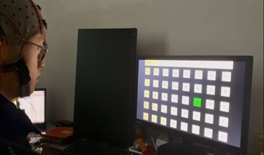 在实践体验环节,学院向同学们展出了非常具有专业特色的设备:基于稳态视觉诱发电位的脑-机接口拼写系统、机械臂手势控制、VR机载飞行视景系统,吸引了在场同学们的兴趣,体验过后,同学们纷纷表示对计算机的实践应用有了更直观的认识。