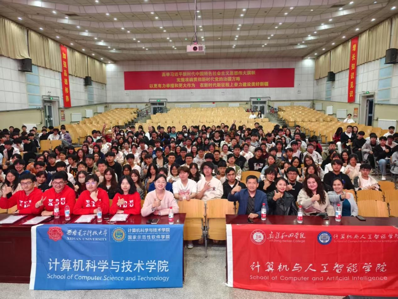 为激发学生对计算机专业的兴趣和竞争意识,助教代表为和田学院的学生开展计算机认证和竞赛经验分享。张仕浩结合自身升学就业经验,为同学们介绍了CCF CSP认证、软考以及全国计算机等级考试,引导学生规划未来职业发展,积极通过参与各类认证提升实践能力。刘飞扬从创新创业竞赛、学科竞赛以及编程竞赛3个不同的类型中为同学们选择了具有代表性的互联网+、数学建模竞赛以及IEEE极限编程比赛,为同学们详细介绍备赛策略以及团队合作的重要性,建议同学们通过竞赛的参与深刻感受到计算机技术的创新魅力和实践价值。在分享会拓展课堂上,西电助教与同学们互动问答,为同学们种下了课外学习拓展的种子。