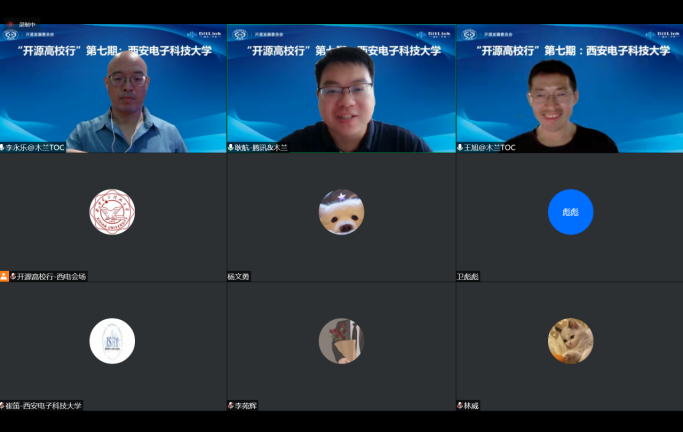 活动最后,王庆老师、耿航老师、王旭老师、李永乐老师进行了圆桌讨论,就“高校学生如何参与开源?”、“公司需要什么样的开源人才?”、“国内目前开源就业氛围如何?”、“高校目前内部开源教育氛围如何?”等关键问题展开讨论。四位专家与西电师生通过线上提问进行持续交流,互动交流环节气氛热烈。