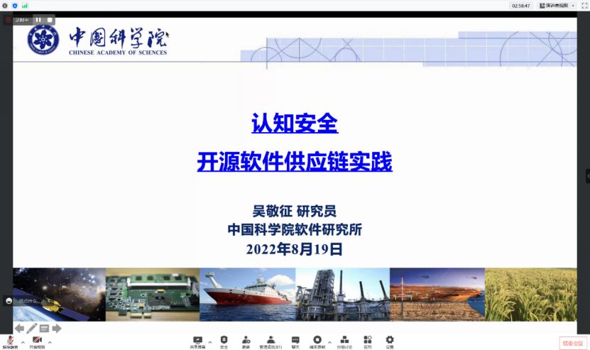 (通讯员 崔笛)8月19日下午,CCF开源发展委员会开源高校行第七期西安电子科技大学站活动在线上举行。本次活动西安电子科技大学计算机科学与技术学院(国家示范性软件学院)与木兰开源社区共同承办,邀请到中国科学院软件研究所研究员吴敬征老师、天津大学智能与计算学部副教授陈森老师、哈尔滨工业大学计算机科学与技术学院副教授高翠芸老师、阿里巴巴技术专家林子熠老师、华为技术专家刘逵老师、腾讯开源专家耿航老师、英特尔云基础设施软件研发总监王庆老师、蚂蚁集团资深技术专家王旭老师、华为计算产品线开源开发与运营部总监李永乐老师九位嘉宾进行报告分享,并与西安电子科技大学师生开展互动交流。西安电子科技大学计算机科学与技术学院华山准聘副教授崔笛老师主持本次活动,西安电子科技大学计算机科学与技术学院党委书记、2022CCF中国开源大会组织委员会联合主席、程序委员会联合主席李青山教授致辞。本次活动氛围浓厚,互动交流热烈,在线参加人数最高接近200人。