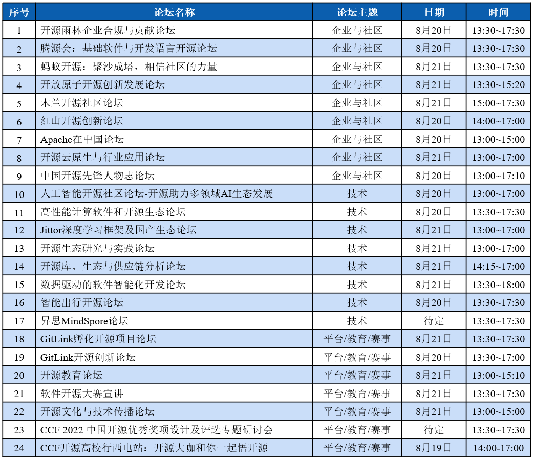 附:大会各论坛信息