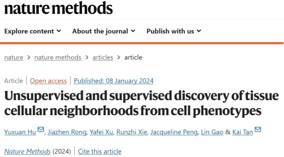 (通讯员 许雅斐)近日,我校计算机科学与技术学院西安市计算生物信息学重点实验室高琳教授团队胡宇轩副教授在单细胞空间组学研究领域取得重要突破,是西电首次以第一且通讯单位在“方法学”顶级期刊《Nature Methods》(IF=48)发表研究成果“Unsupervised and supervised discovery of tissue cellular neighborhoods from cell phenotypes”,这也是胡宇轩副教授和高琳教授近年来取得的第三篇NS子刊成果(2021年西电第一单位首发Science子刊《Science Advances》,2019年《Nature Communications》)。