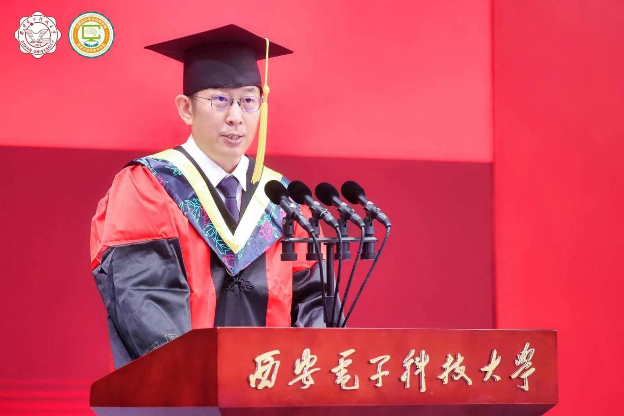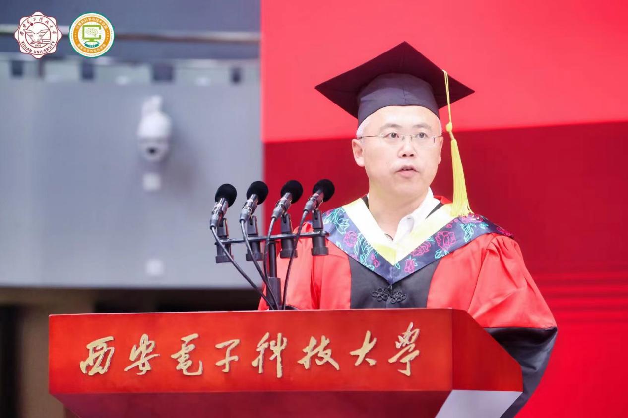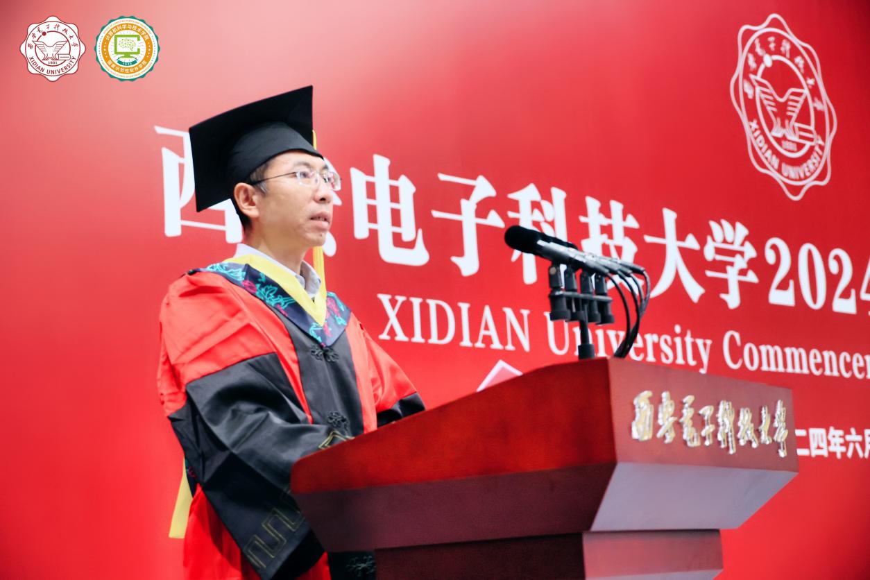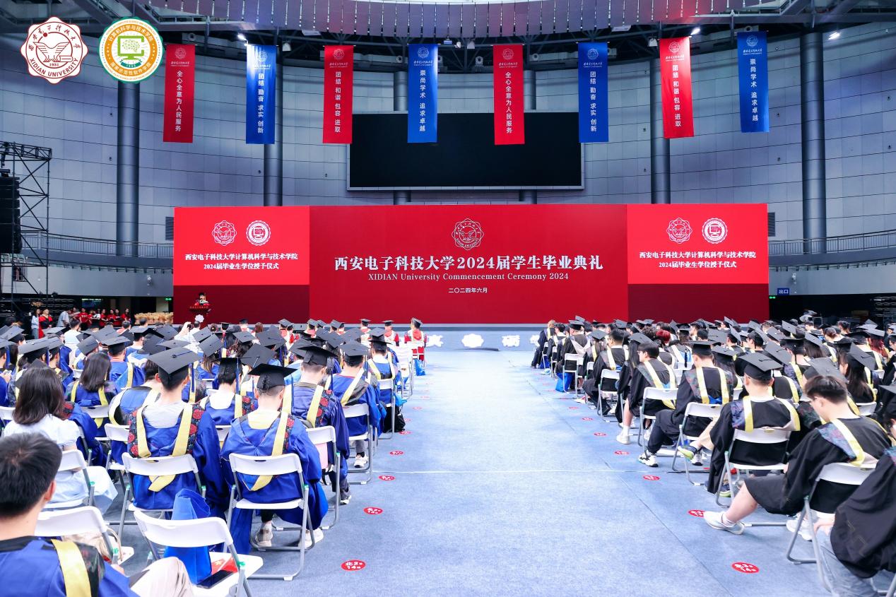 (通讯员 王牌)6月21日,计算机科学与技术学院2024届毕业生学位授予仪式在南校区远望谷体育馆主馆成功举办,西安电子科技大学副校长王泉教授出席仪式并为毕业生授位。学院党委书记李青山,执行院长崔江涛,国际交流与合作部部长沈玉龙,信息化推进办公室主任苗启广,副院长万波、杨力、李瑞,学位评定委员会委员高琳共同为毕业生一一拨穗授位。学院党委副书记张莹莹、黄成龙,副院长赵韩强,教师代表,学院办公室相关同志,全体毕业班辅导员,2024届本、硕、博全体毕业生参加了仪式。仪式由学院党委书记李青山主持。