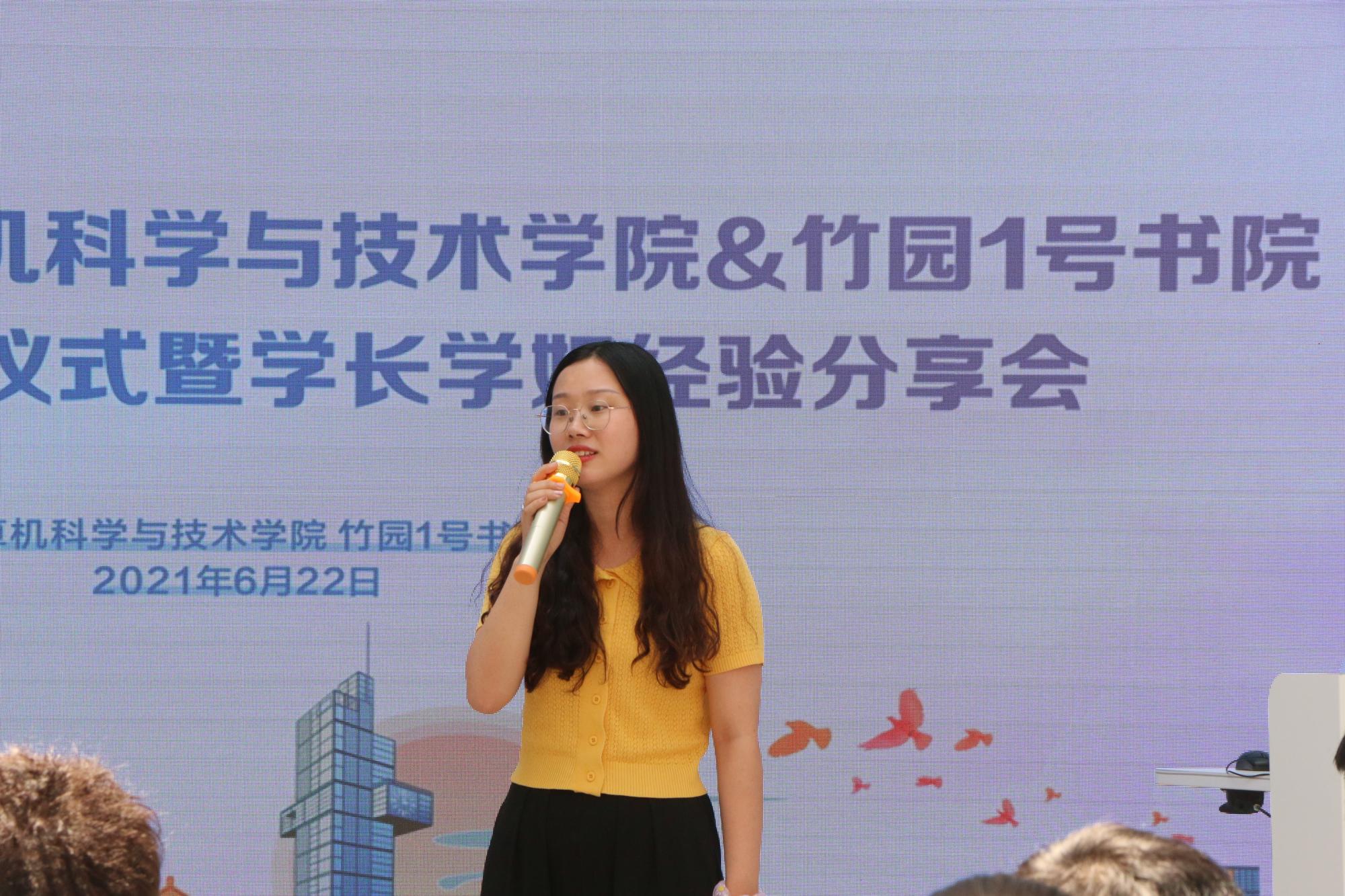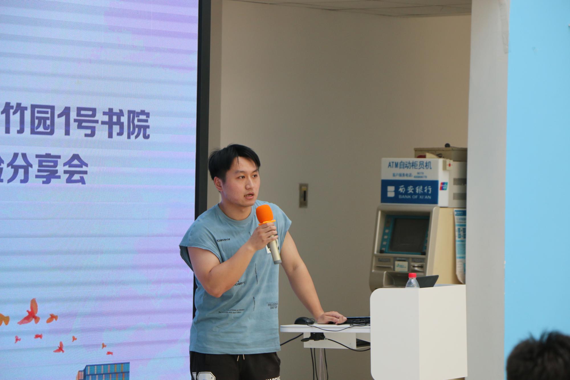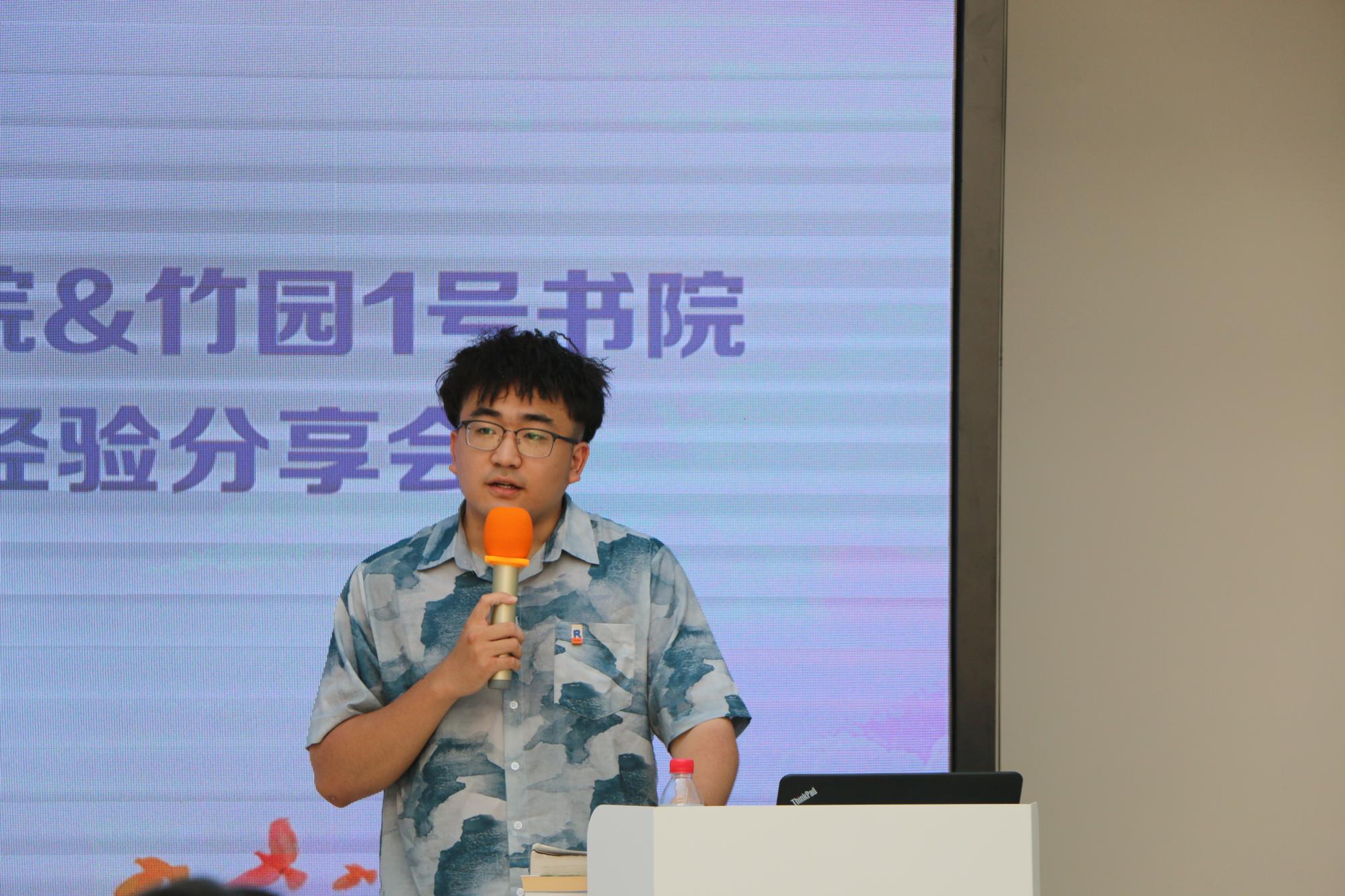 随后,来自计算机科学与技术学院2017级优秀毕业生以书为媒,以己为鉴向竹园1号书院大一学弟学妹送上经验分享与美好祝福。2017级雷泽宇谈到,很高兴能和学弟学妹们分享自己大学四年的经历和感想,看到学弟学妹们仿佛看到了四年前的自己,希望学弟学妹们能在今天几位优秀的同学分享的感染下奋起向上,珍惜大学的美好时光,合理安排时间,在平时的生活中不仅完成好学业,也能保持阅读的习惯,多运动,在大学结识一生难忘的朋友!