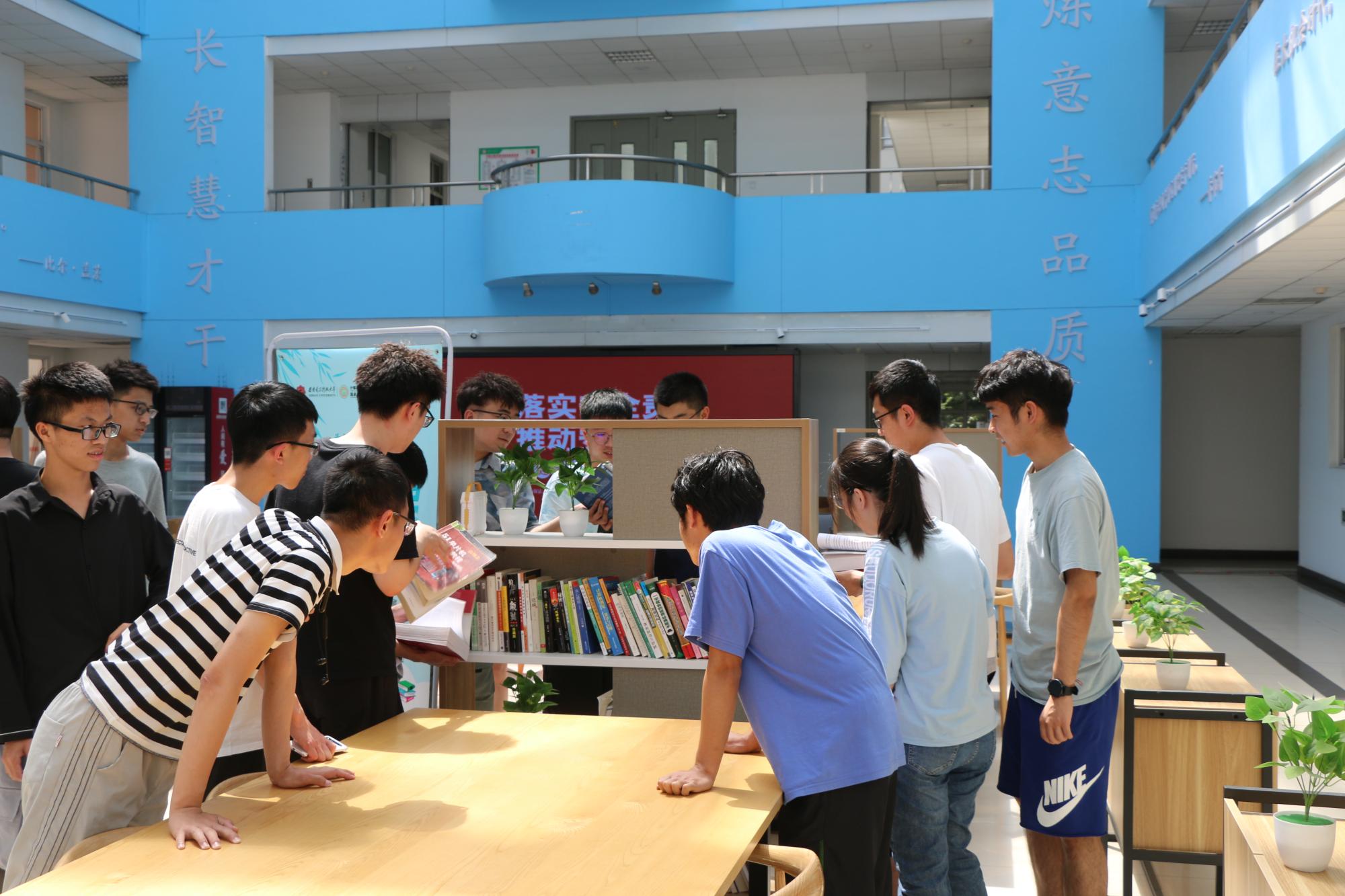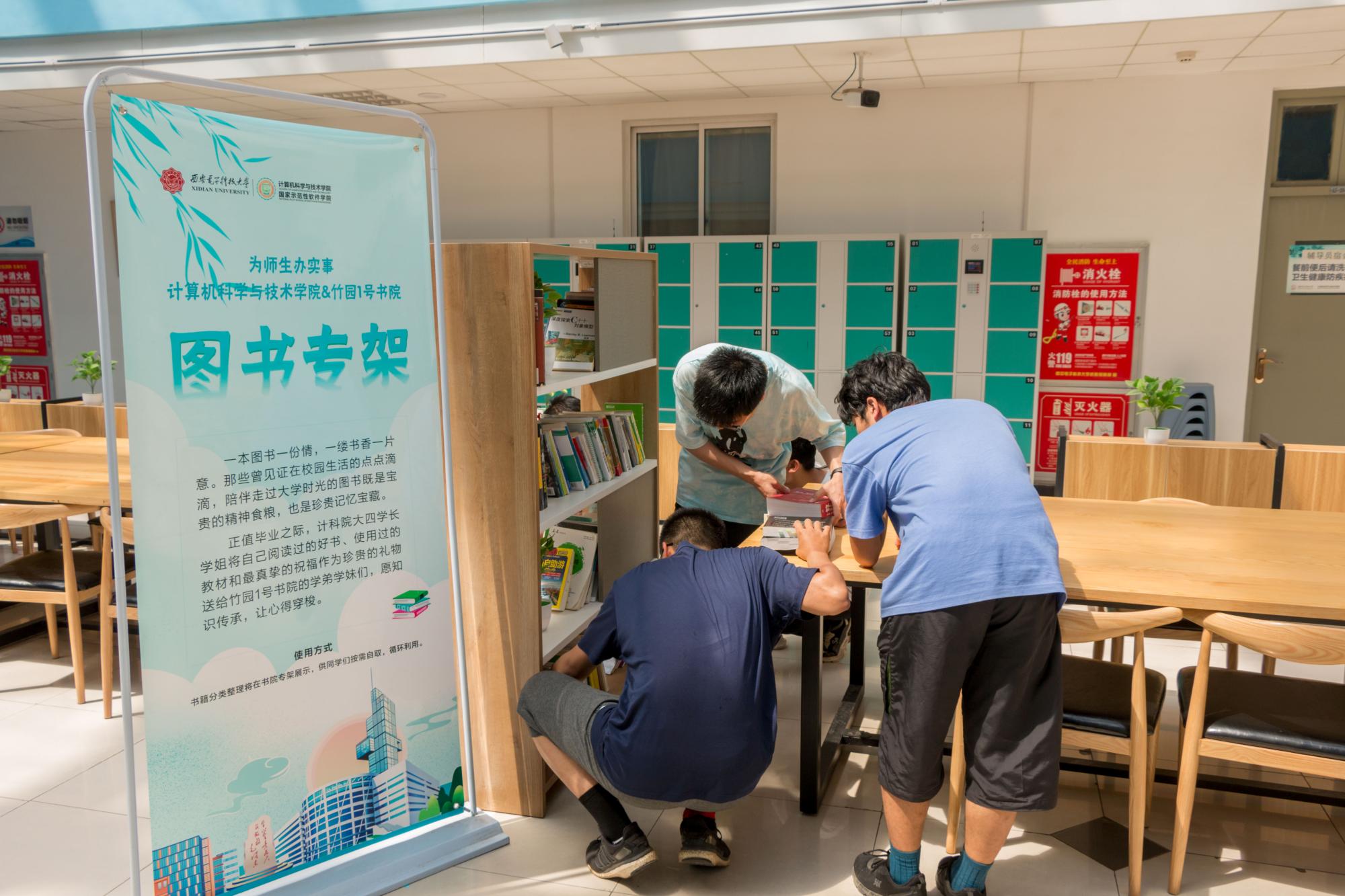 计算机科学与技术学院联动竹园1号书院将所赠书籍分类整理在书院大厅打造“图书专架”展示,供同学们按需自取,循环利用。活动结束后,大一同学们纷纷驻步围看图书展架,挑选自己所需要的书籍,将学长学姐的积累与祝福传承。