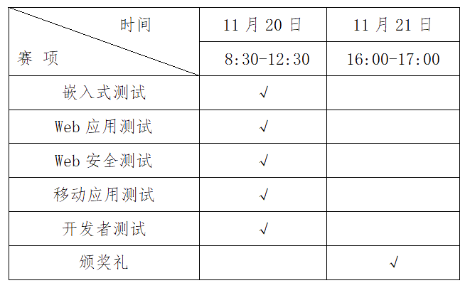 总决赛时间为11月20-21日。总决赛为现场赛,比赛城市西安。参赛选手差旅食宿自理,费用由参赛学生所在学校承担。