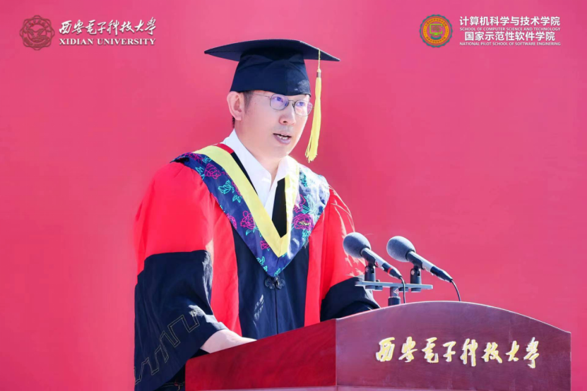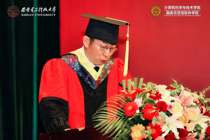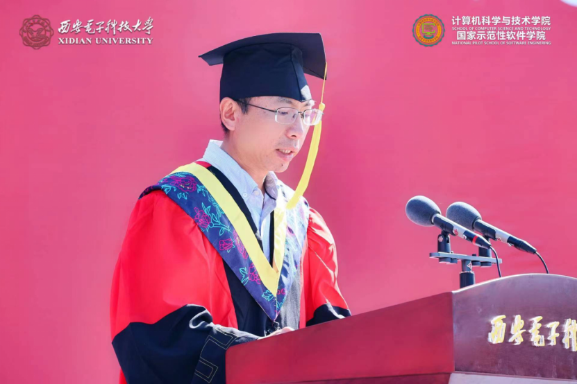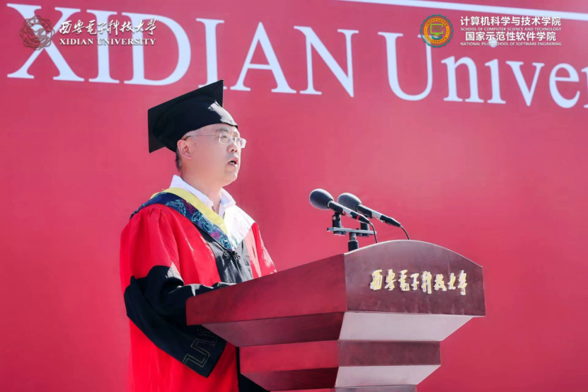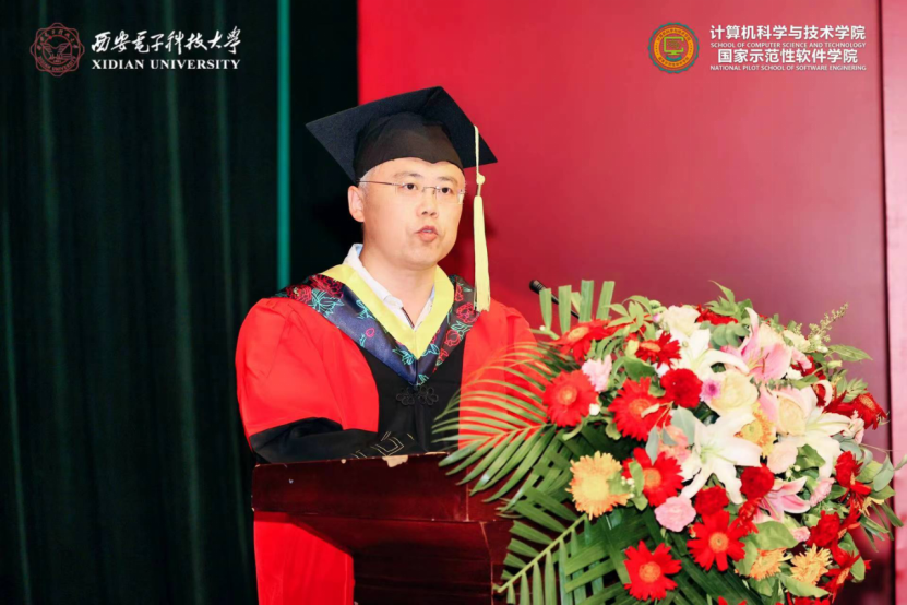 学院执行院长崔江涛教授深情寄语2022届毕业生,他谈到2018级同学以青春“小我”战疫情大考,逆风而行,主动担当;关键时刻,学生党员挺身而出,更多的同学受到感染积极加入一线志愿者工作,彰显“无我”初心。18级同学与重组后的计算机科学与技术学院共成长,与历届西电人一起不懈奋斗,共筑院校荣光。他对同学们提出三点希望,第一是在两个百年的历史交汇时期“定位坐标”,立大志、明大德、成大才、担大任,强化终身学习能力,提升核心竞争力,把个人发展与国家命运相结合,将个人理想融入到中华民族的事业中;第二是在互联网的时代浪潮中坚守“慎独克己”,在信息洪流中严守计算机伦理,守护自己的精神家园,弘扬社会正能量;第三是在百年未有之大变局中乘风破浪,深刻认识到我国所面临的内外环境,认识到计算机行业发展面临的挑战,以解决实际问题为目标和突破口,知难而上,向“卡脖子”技术问题发起冲击,投身新一轮数字革命的热潮中。最后,崔江涛寄语毕业生,以青春之“小我”,践行“无我”初心,书写时代之“大我”,在各自的岗位上不断努力,把青春奉献给国家和民族,让青春闪耀光彩。