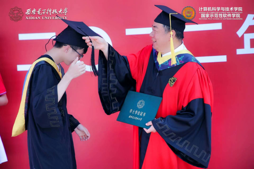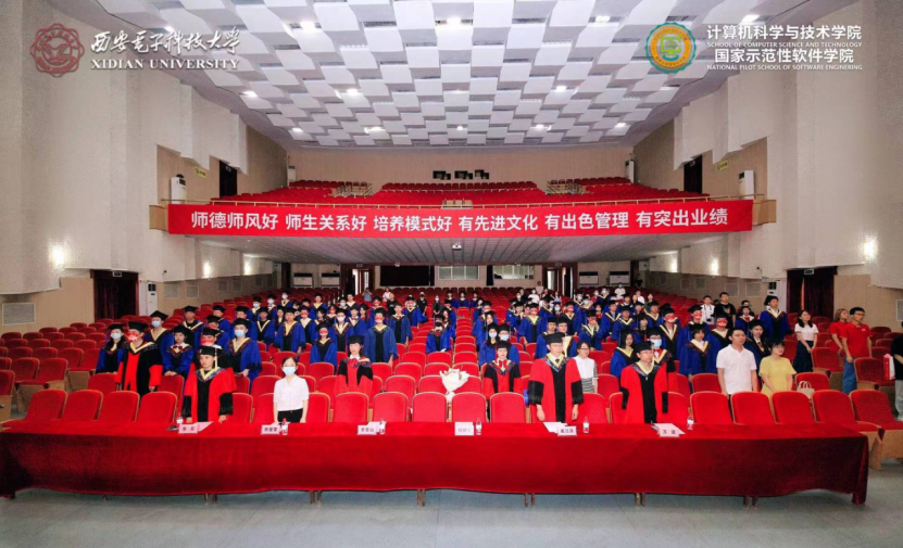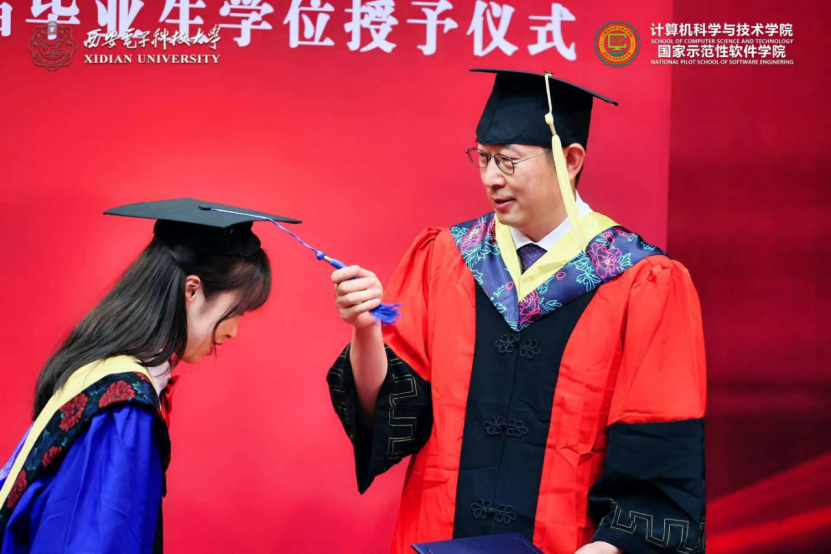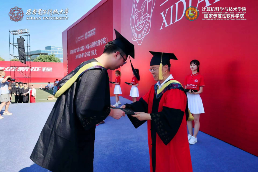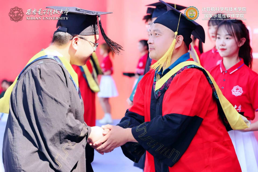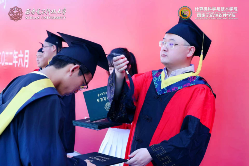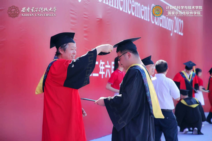 (通讯员 张力月 何敏之)6月25日,计算机科学与技术学院2022届本科毕业生学位授予仪式和研究生毕业生学位授予仪式先后在南北两校区成功举办。西安电子科技大学党委副书记杨银堂教授出席仪式并为毕业生授位。学院党委书记李青山、执行院长崔江涛、副院长万波,以及学院学位委员会委员、导师代表刘西洋、鱼亮、李辉、李瑞共同为2022届830名本科毕业生以及427名硕博士毕业生一一拨穗授位。学院党委副书记张莹莹、学院教师代表、学院办公室相关同志、全体毕业年级辅导员出席了仪式。仪式由院党委书记李青山主持。