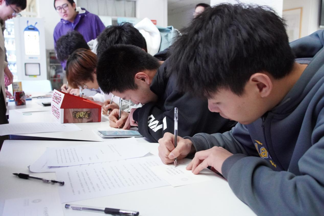 天气渐冷,但是海棠9、10号楼和丁香11号楼的大厅却十分热闹,低年级本科生们热情高涨,一笔一划写下对学长学姐的美好祝愿,“梦想的舞台在考场,拼搏的舞姿在笔端”,每一句都是学弟学妹们发自内心的祝福。在剩下冲刺的日子里,一段鼓励的声音,一句暖心的话语,都将汇聚成一份份坚持的勇气。希望所有计科考研学子在最后关头再努努力,加把劲,朝着自己的梦想无限前进!