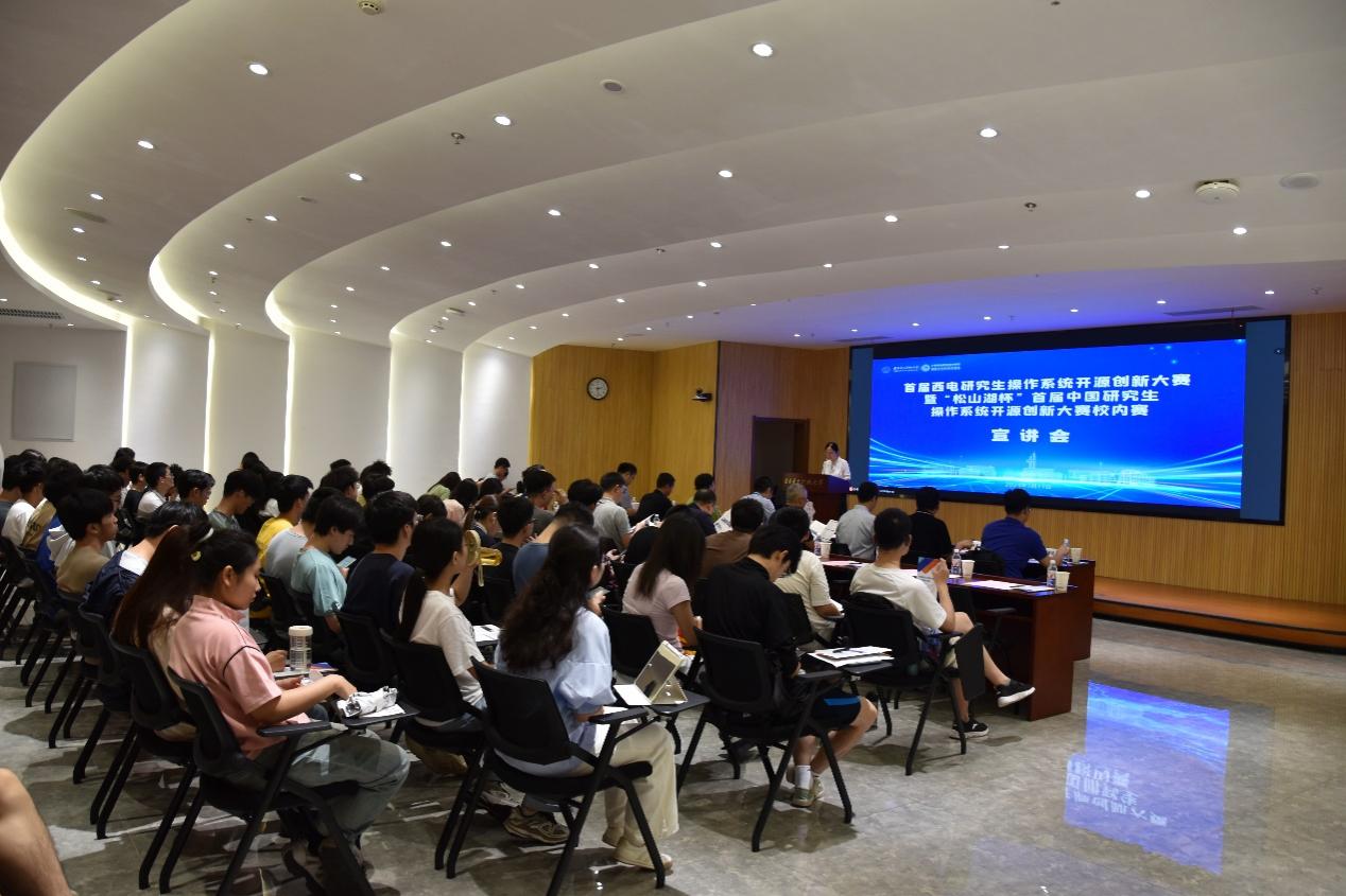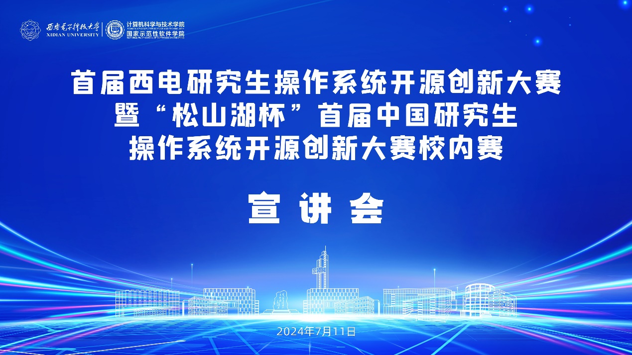 (通讯员 寇大为)7月11日下午,首届西电研究生操作系统开源创新大赛暨“松山湖杯”首届中国研究生操作系统开源创新大赛校内赛宣讲会在南校区会议中心103报告厅和线上平台同步举行。学校党委研究生工作部部长张君博、计算机科学与技术学院党委书记李青山为活动致辞,大赛执委会委员、国防科技大学王静做大赛赛事介绍,校内赛事承办单位计算机科学与技术学院副院长杨力做校内赛介绍。开源社区专家董金光、李卓珩受邀到现场结合赛题开展宣讲,开源社区专家程书意、麻付强、朱云成受邀进行线上宣讲。华为西安研究所人力资源部高级招聘经理曹耀东、计算机科学与技术学院党委副书记黄成龙出席了宣讲会,校内一百多位师生通过线上线下方式参加宣讲会。活动由计算机科学与技术学院党委副书记张莹莹主持。
