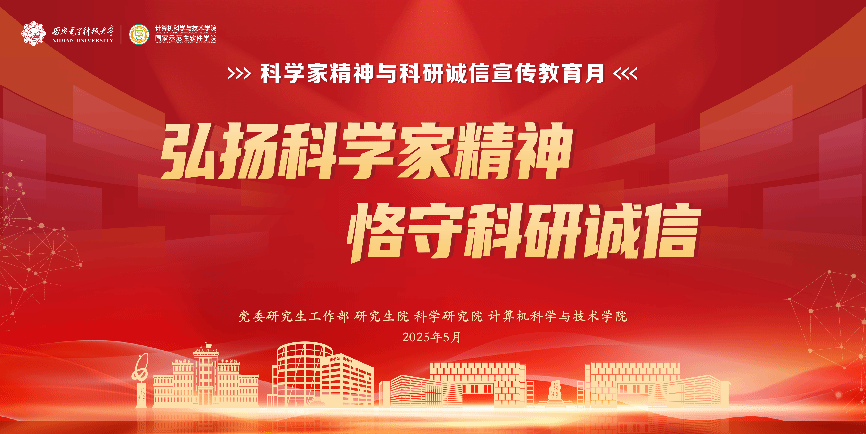 据悉,党委研究生工作部、研究生院、科学研究院、计算机科学与技术学院于5月联合开展“科学家精神与科研诚信宣传教育月”系列活动,通过主题报告、专题讲座、专题培训、时代之声主题宣讲、朋辈沙龙、实践研学、知识竞赛、科学家精神系列推文等多种形式,以青年学生喜爱的表达和沉浸式体验让科研诚信教育从“入眼”到“入心”,构建起“理论筑基-实践赋能-文化浸润”的立体化教育体系。
