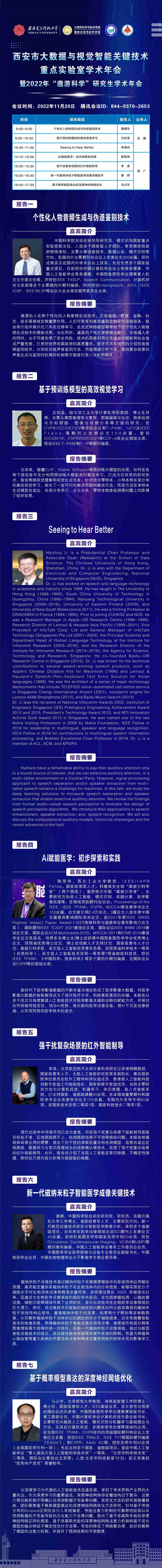 姓名 西安市大数据与视觉智能关键技术重点实验室学术年会 时间 2022年11月20日(周日)