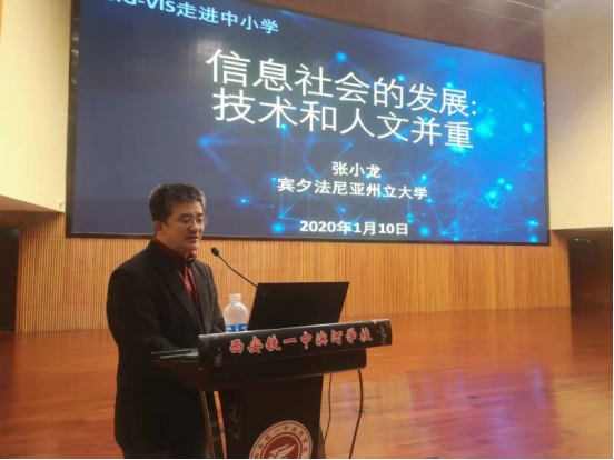 1月10号下午,权义宁老师走进铁一中滨河校区,结合我校相关专业和科研项目以及学校基本情况、学科特色、招生情况,向在座的600余名高三学生做了详细的解读,增加中学生对学校各学科专业的了解和认识。据悉,该中学每年有近300名600分以上高考学生,对我校报考热度非常高。期间,特邀嘉宾宾夕法尼亚州立大学张小龙教授以“信息社会的发展,技术和人文并重”为题做了一场可视化技术科普报告,会场座无虚席,同学们兴趣盎然,提问踊跃,二楼学生因为抢不到麦克风提问,都站起来大声提问,希望能通过深入浅出的科普讲座,打通学生们好奇心探索科学世界之路。