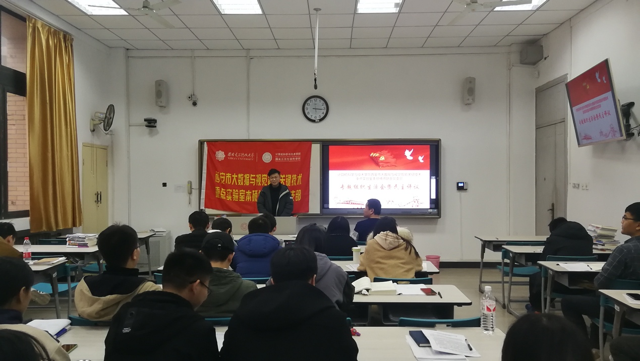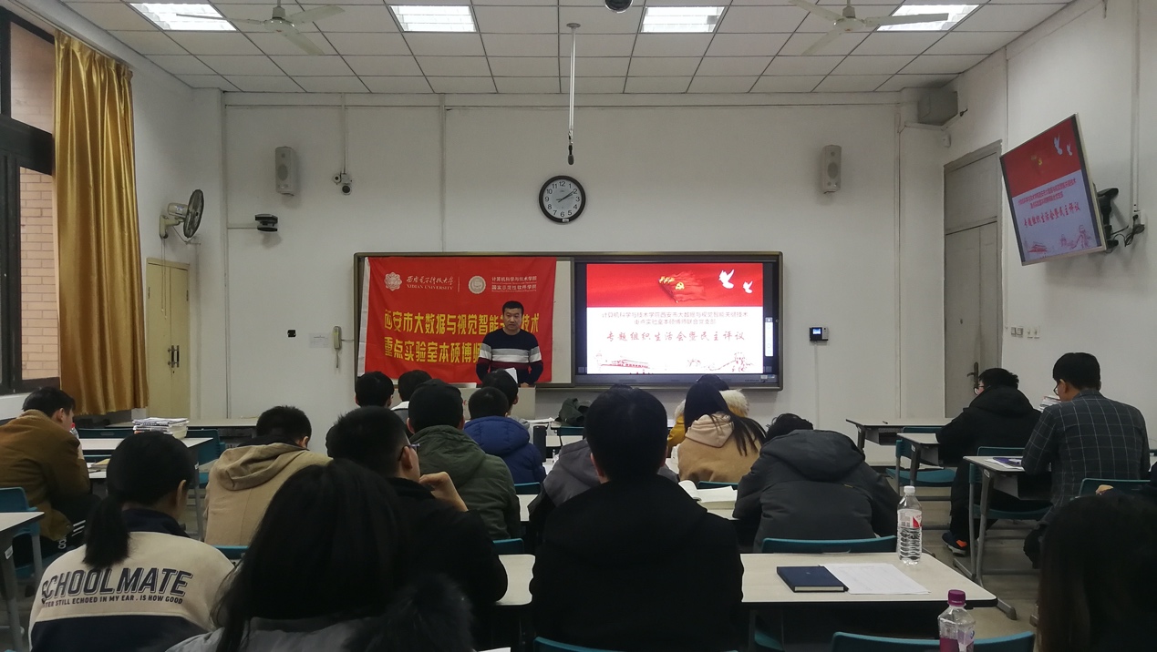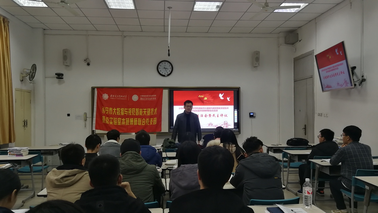 (通讯员 段金龙 葛道辉 刘向增) 按照学校党委关于基层党支部组织生活会和开展民主评议党员工作的要求和部署,西安市大数据与视觉智能关键技术重点实验室本硕博师联合党支部于2019年11月29日在南校区C楼123教室召开了专题组织生活会暨党员民主评议。支部书记刘向增主持了本次会议,计算机科学与技术学院副院长苗启广参加会议并进行总结发言。