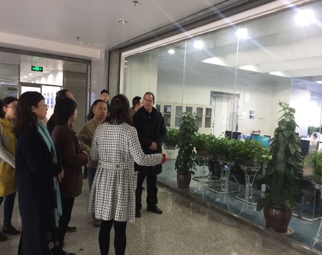 汇报结束后,专家组进行了示范工作站的实地考察,参观了未来国际的大数据中心,陕西省信息化体验中心,并与站内的学生进行了交流。