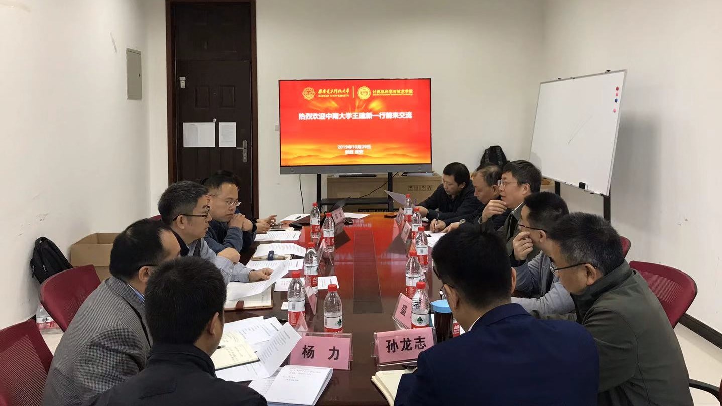 (通讯员 陈龙)10月29日上午,中南大学计算机学院院长王建新一行6人来我院交流座谈,计算机科学与技术学院党委书记李青山、执行院长崔江涛及教师代表出席了会议,双方就人才培养、学科建设、实验室管理等事宜进行了座谈。