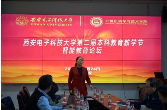 (通讯员 吴乾丽)为全面落实习近平总书记全国教育大会上的讲话精神和新时代全国高等学校本科教育工作会议精神,深化本科教育教学改革,展示先进教学理念与方法,促进人工智能教育与课堂教学改革的深度融合。由计算机科学与技术学院负责的第二届本科教育教学节智能教育论坛于10月24日下午在北校区主楼II区319报告厅举行。本次论坛邀请了国家级教学名师、精品在线开放课程负责人耿国华教授,国家级电工电子实验基地主任周佳社教授,学校智能教学试点教师谢晖副教授和苗启广教授等作专题报告,论坛由计算机科学与技术学院副院长苗启广主持,本科生院常务副院长肖嵩、学院各系主任、实践中心主任、学院精品在线课程负责人、教育信息化和智能教育项目负责人、课程负责人及全校各个学院的老师参加了此次论坛。