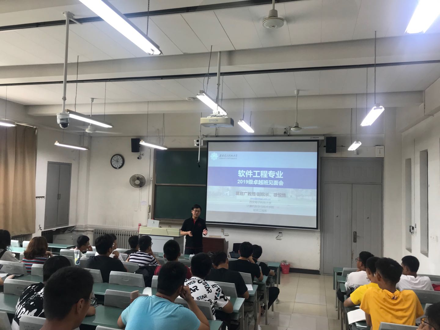 (通讯员 杨鹏飞 徐悦甡)为全面落实立德树人根本任务和“六卓越一拔尖”计划2.0精神,真正做到以学生为中心,计算机科学与技术学院于9月8日和12日分别召开软件工程专业和计算机科学与技术专业卓越班见面会,为2019级卓越班新生详细解读“卓越2.0”培养方案和实施计划。见面会分别由软件工程专业卓越班负责老师徐悦甡及计算机科学与技术专业卓越班负责老师杨鹏飞主持,软件工程卓越班四十名同学和计算机科学与技术卓越班四十名同学分别参加,学院副院长苗启广出席了会议。