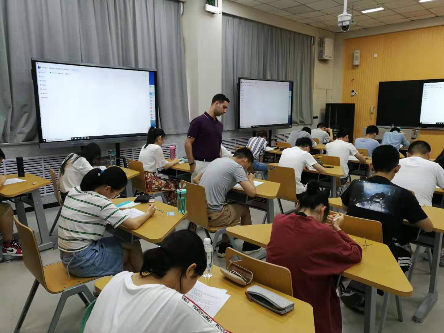 学生对这门课的兴趣很浓,原本只能容纳30人的智慧教室,吸引了很多前来旁听的学生,外教瞬间被学生的热情所感染,东西方思想的火花在这里开始碰撞。该课程使同学们最大感受是“自由,开放,参与,互动”。“国内”在教学方式上更多以老师讲授为主,学生处于被动地位,课堂氛围较沉闷,教学方式较单一。此次,外教则更多注重学生学习知识时的体验过程,课堂上更多采用分组探讨,活动与游戏等方法传授知识。该门课程使人印象最深的是外教讲授“噪声对信息传输的影响”时和学生开展的一个游戏。在这个游戏中,外教首先低声细语地告诉第一个学生一条信息,接着第一个学生再低声细语地告诉第二个学生,……。整个过程中,其他学生大声地交流来干扰信息的传递,直到最后一个学生收到信息。结果发现最后一个学生收到的信息与外教初始传递的信息竟然有很大的出入。学生通过该游戏,全程参与到老师课堂教学活动中,这种形式的教学,形象,生动,学生对课堂内容理解深刻,从避免了教学的枯燥乏味,学生注意力容易分散等问题。