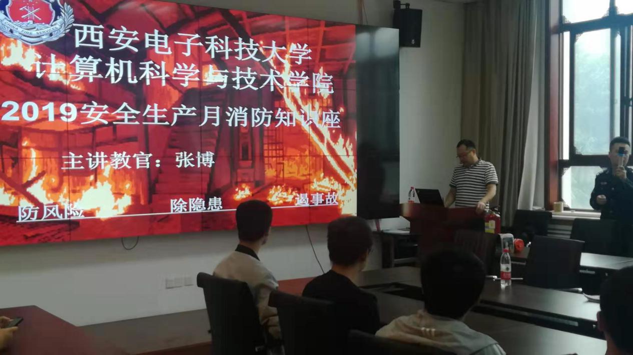 (通讯员 周维妮)为普及消防安全知识,增强学院师生消防安全意识,提高处理火灾等突发事件的应急能力,落实学院防火防灾安全管理工作。6月28日上午计算机科学与技术学院邀请陕西消安防火宣教中心张博教官,在主楼二区319会议室,为学院师生做消防安全知识讲座。学院副院长赵韩强、各个实验室代表,学生代表以及学院办公室代表共60余位参加了此次知识讲座。
