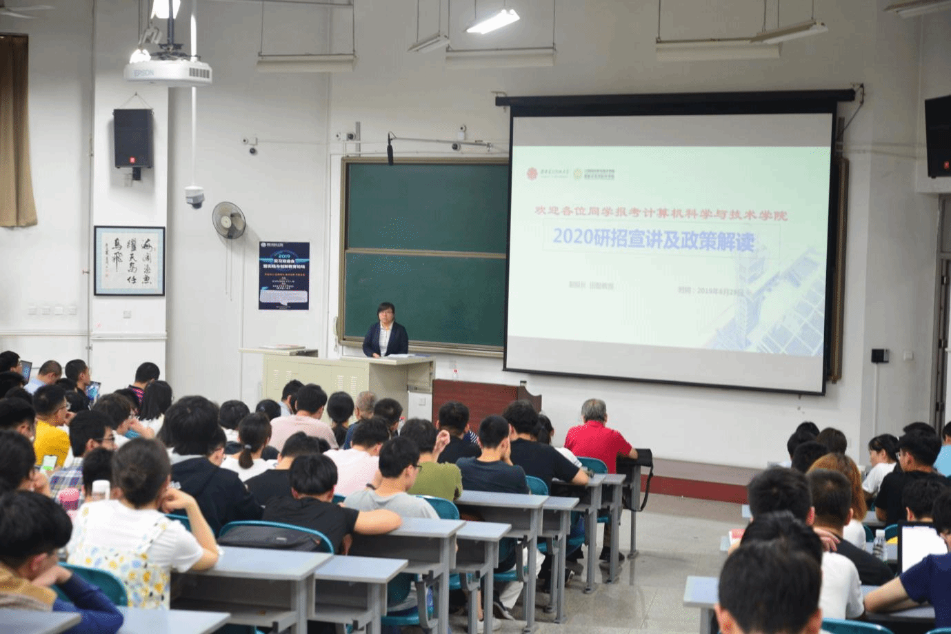 田聪从专业历程、学科建设、师资队伍、科学研究、研究生培养和就业等方面对学院的情况进行了全面介绍。随后,她结合学院近三年研究生录取情况重点解读了2020年研招政策。她强调,学院始终坚持把人才培养放在第一位,近年来研究生培养质量、学科水平、科研实力等方面显著提升。考研是继高考后的又一次关键选择,希望大家准确定位,掌握科学的学习方法,在求学的过程中不畏艰辛,选择在计科院继续深造,给梦想一个答案,谱写计科院新篇章。