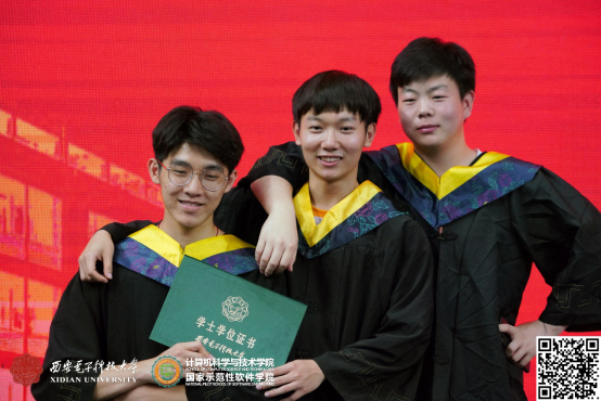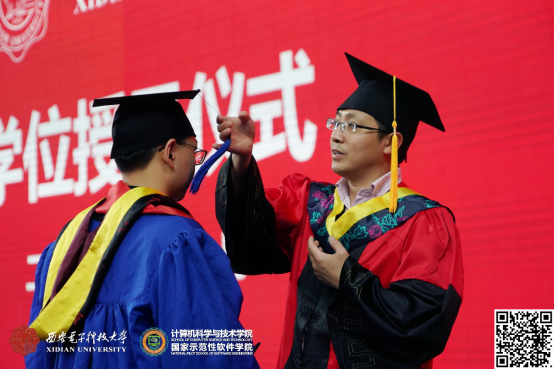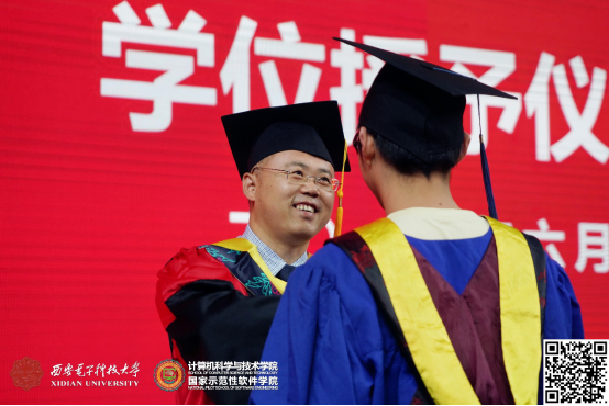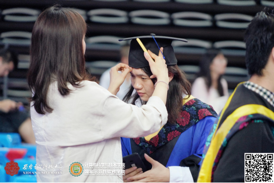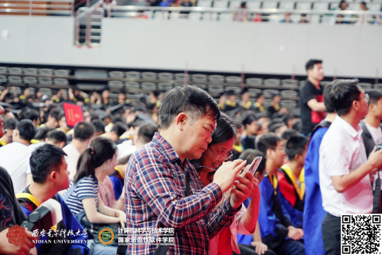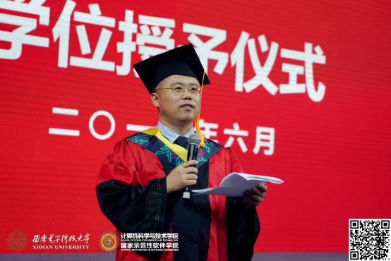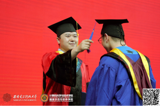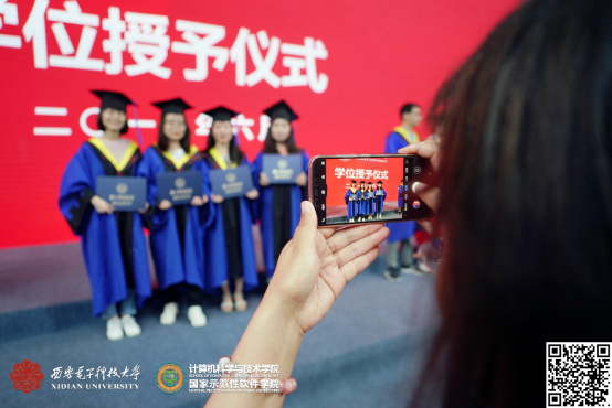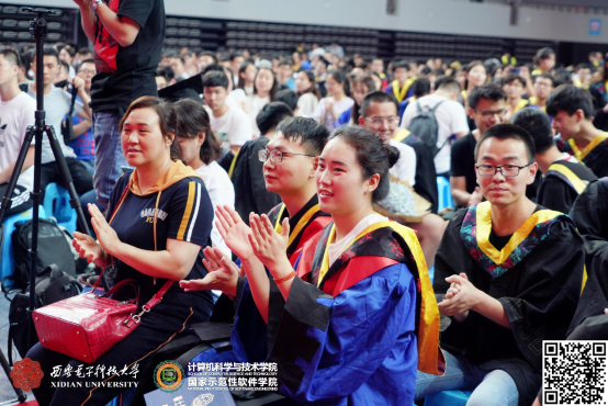整个仪式在轻松、活泼的氛围接近尾声。最后,李青山教授给广大毕业生送去了深深祝福,他说:学院会一如既往的关注你们的成长,并积极支持你们的发展,希望大家在新的工作岗位上,再接再厉,传承西电品质,发扬西电精神!祝愿你们一路顺风,鹏程万里!