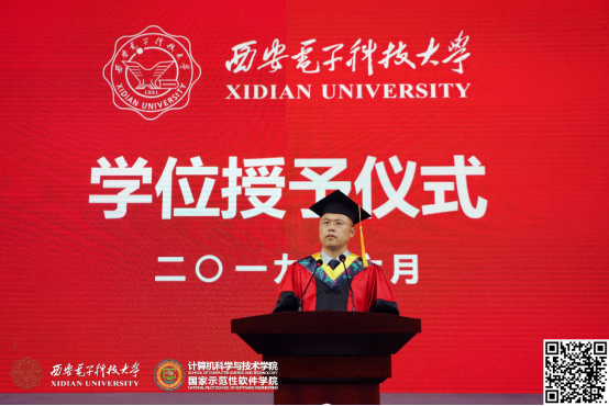 李青山教授首先对2019届全体毕业生表示了诚挚的祝贺,并代表学院对辛勤耕耘,精心育人的老师们表示衷心的感谢!对支持学校与学院发展,共同助力学生成长成才的家长和朋友们表示祝贺和感谢。在介绍完与会嘉宾后,李青山教授宣布计算机科学与技术学院2019届毕业生学位授予仪式正式开始。