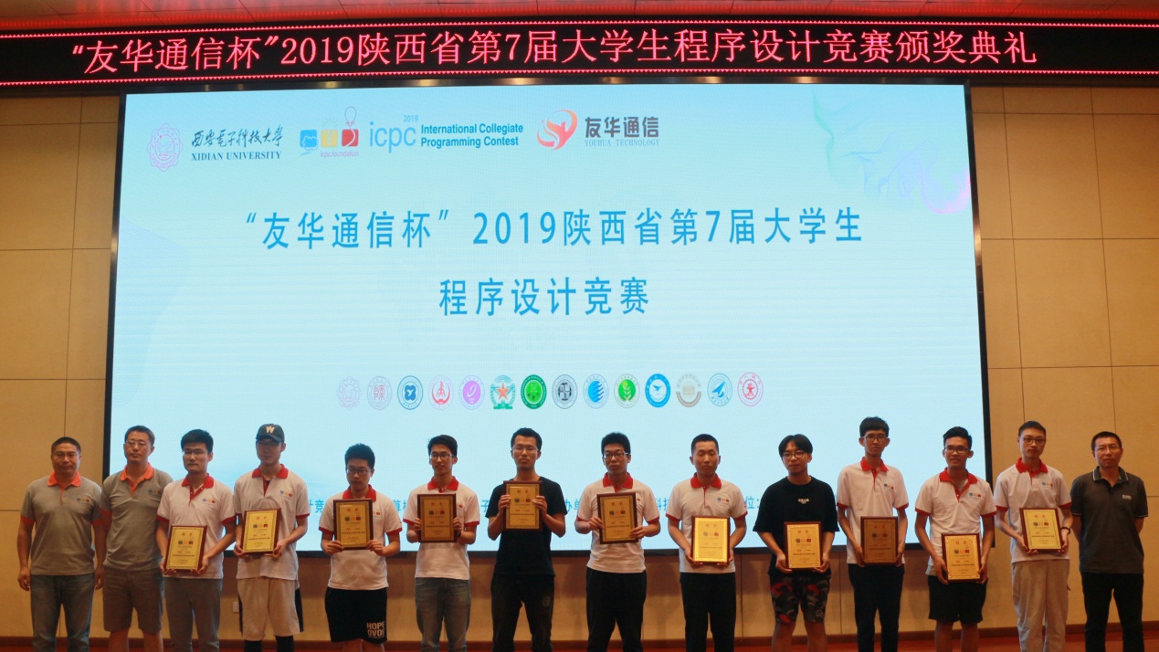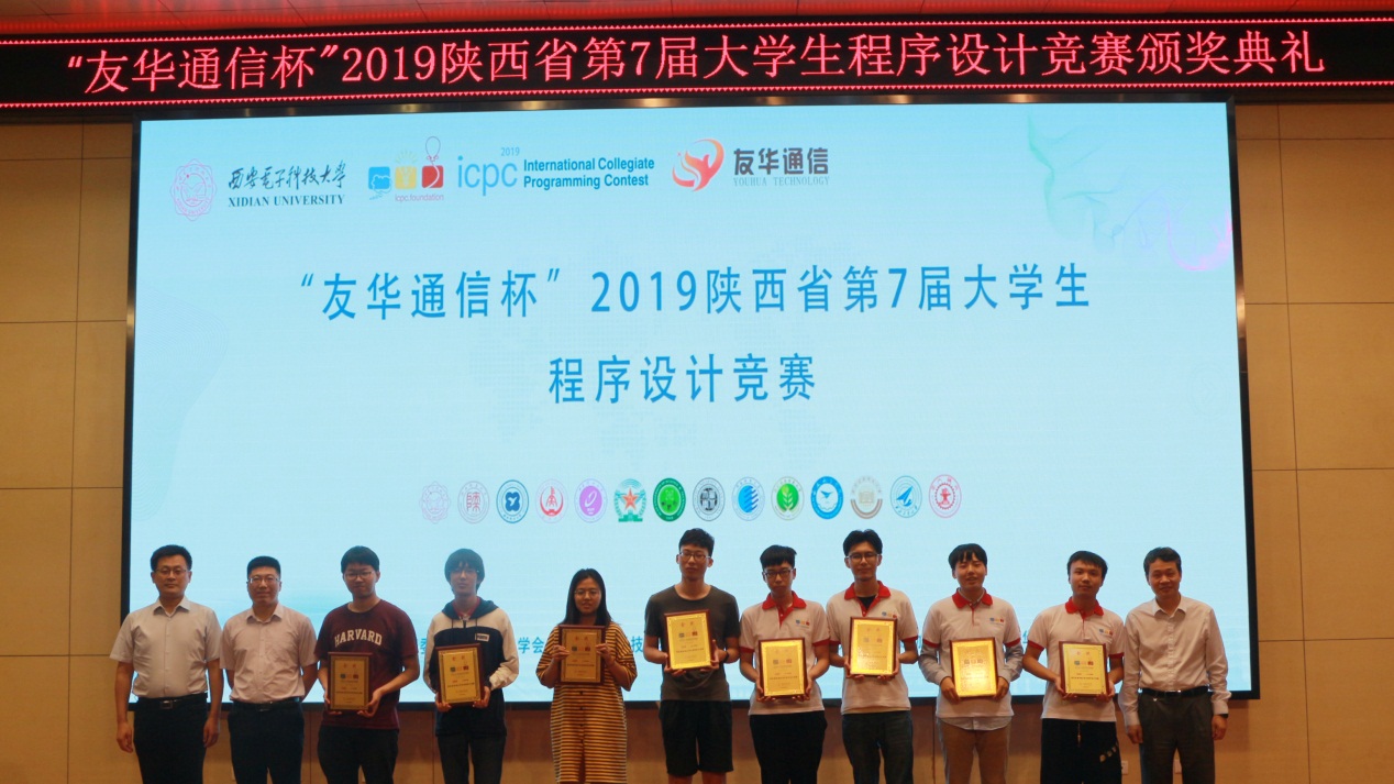 (通讯员 张淑平 陈龙)6月2日, 由陕西省大学生程序设计竞赛组委会、陕西省计算机学会主办、西安电子科技大学承办的“友华通信杯”陕西省第七届大学生程序设计竞赛在西安电子科技大学南校区举行。西安电子科技大学副校长石光明教授、计算机科学与技术学院副院长苗启广教授和深圳市友华通信技术有限公司代表视察了比赛现场、出席闭幕式并为获奖队伍颁奖。