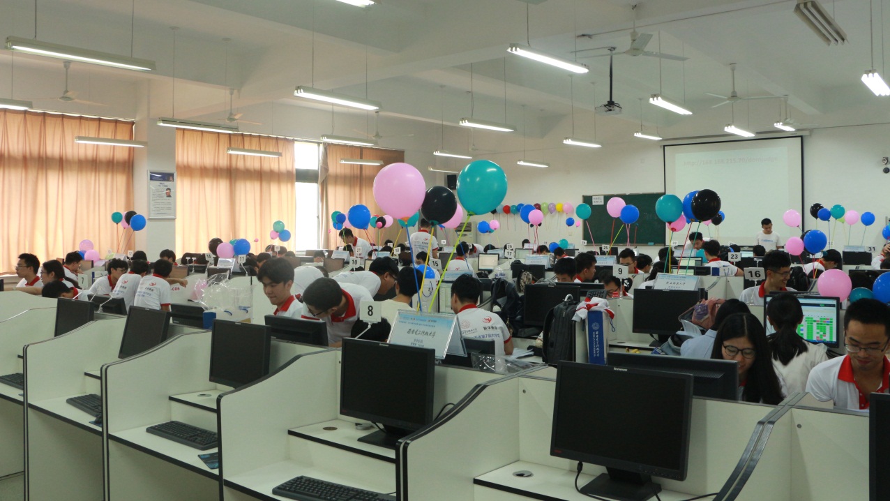 ACM-ICPC(Association for Computing Machinery -International Collegiate Programming Contest)是目前最具影响力的大学生计算机编程竞赛,旨在充分展示大学生创新能力、团队精神和在压力下编写程序、分析和解决问题的能力。陕西省第7届大学生程序设计竞赛(The 2019 ICPC China Shaanxi Provincial Programming Contest)是由ACM-ICPC亚洲区竞赛委员会授权的省级比赛,比赛时题目总数12题、英文描述、时长5小时、每队(3名队员)使用1台计算机,参赛队员需要尽可能快速地阅读分析问题、设计数据结构和算法、编写时空复杂度有严格要求的程序(C/C++、Java)来解决问题,程序完成之后提交给服务器进行自动评判,运行结果(正确或错误)会及时通知参赛队。每队在正确完成一题后,组织者将在其位置上升起一只代表该题颜色的气球,对于每道题目,第一支解决它的队伍还会额外获得一个“FIRST PROBLEM SOLVED”气球。竞赛结果按照正确解答题数降序、总用时升序排名,每道试题用时将从竞赛开始到试题解答被判定为正确为止,其间每一次提交运行结果被判错误时将被加罚20分钟时间,未正确解答的试题不计时。